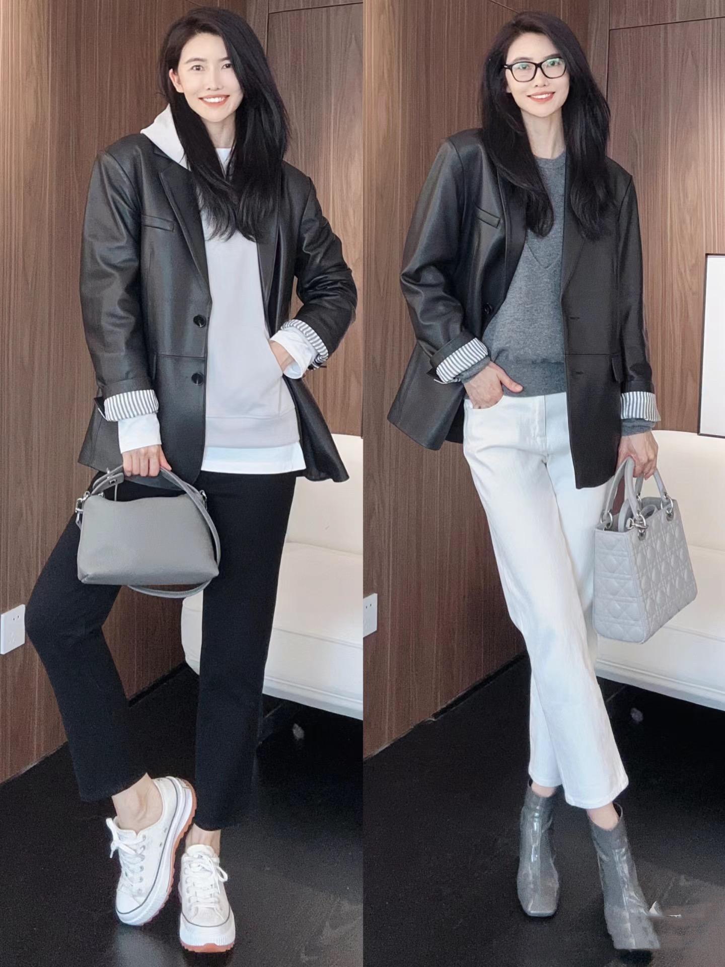 衛衣、毛衫、背心裙,西服、小香風、皮衣、牛仔,各種款式應有盡有。要說最利落低調,還顯氣質的單品,一定是經典黑西服。