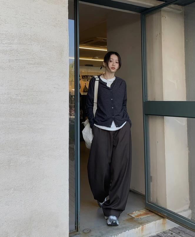 秋日,針織開衫又要火起來了,軟軟糯糯的材質,哪怕是貼身穿都不怕,當然了,在秋天季節,疊穿會顯得更得體一點。可以選擇疊穿t恤,再搭配大體積的西裝褲,很輕鬆舒適的狀態,褲子的垂墜感極佳的,在無形間就可以拉長腿部線條。