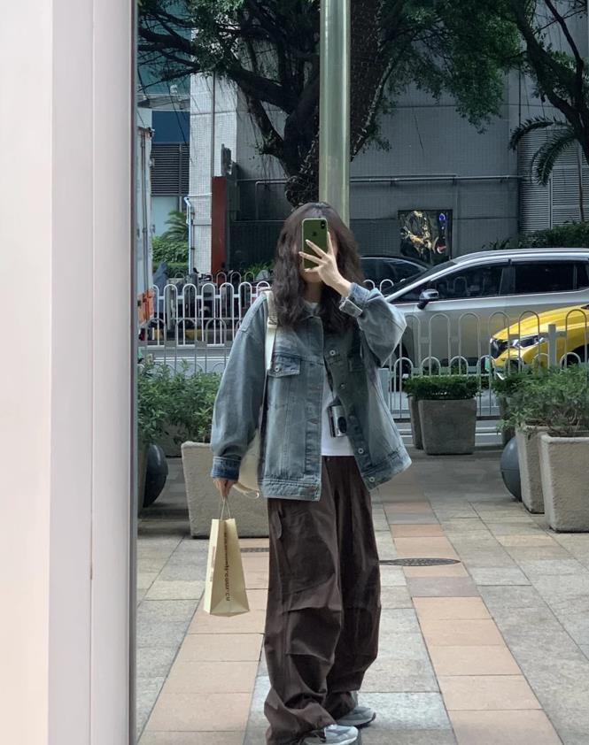 開始期待秋天了,牛仔外套+工裝褲+運動鞋,這樣的搭配真的好喜歡啊,今年工裝褲也是非常流行的,寬鬆的褲型,那可太藏肉顯瘦了。對腳型沒有一點約束感,腿粗、腿型不好看的身材,都可以輕鬆駕馭。