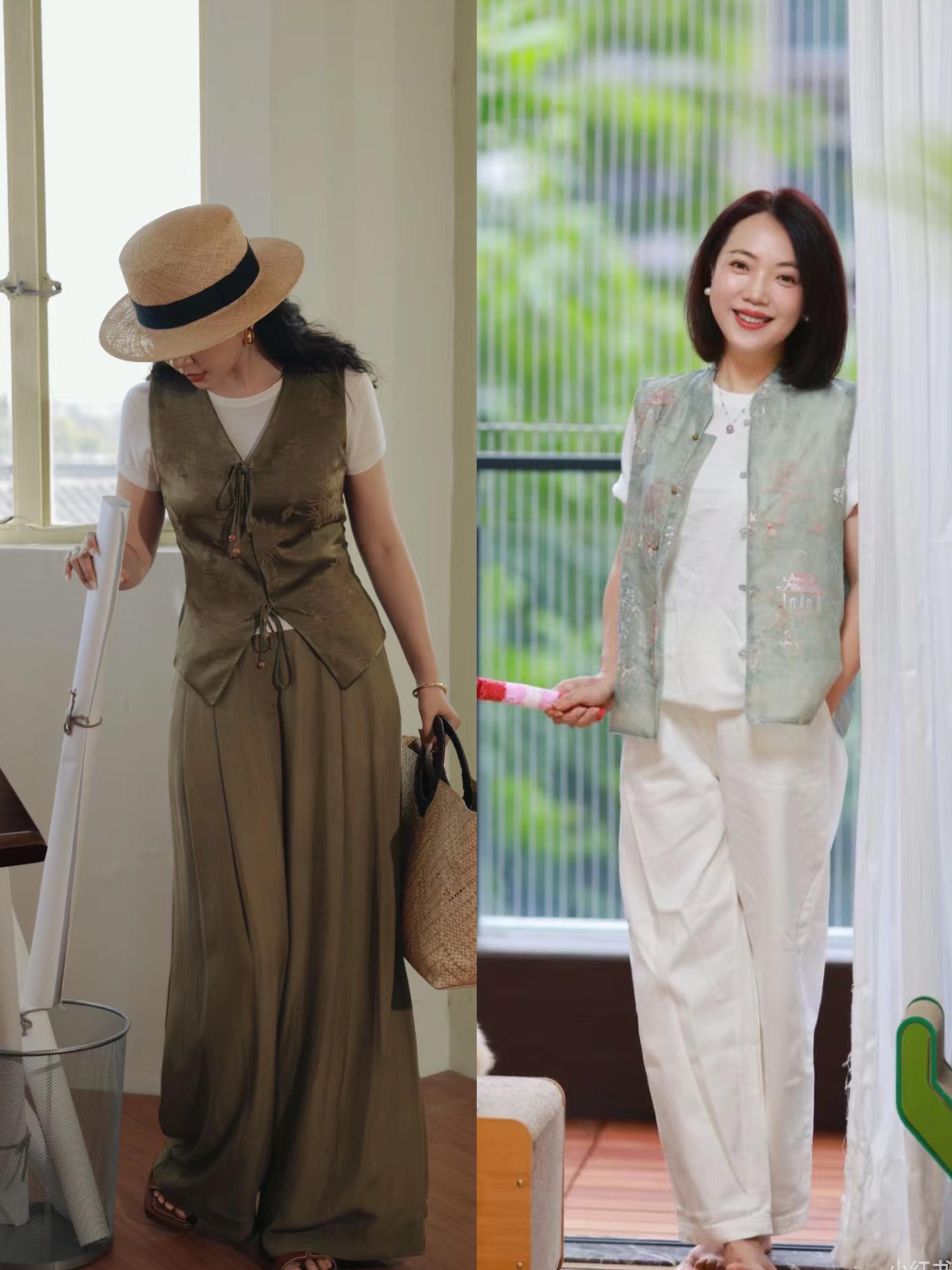 新中式馬甲,與闊腿褲更配!