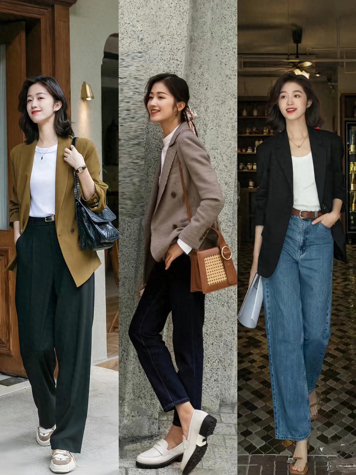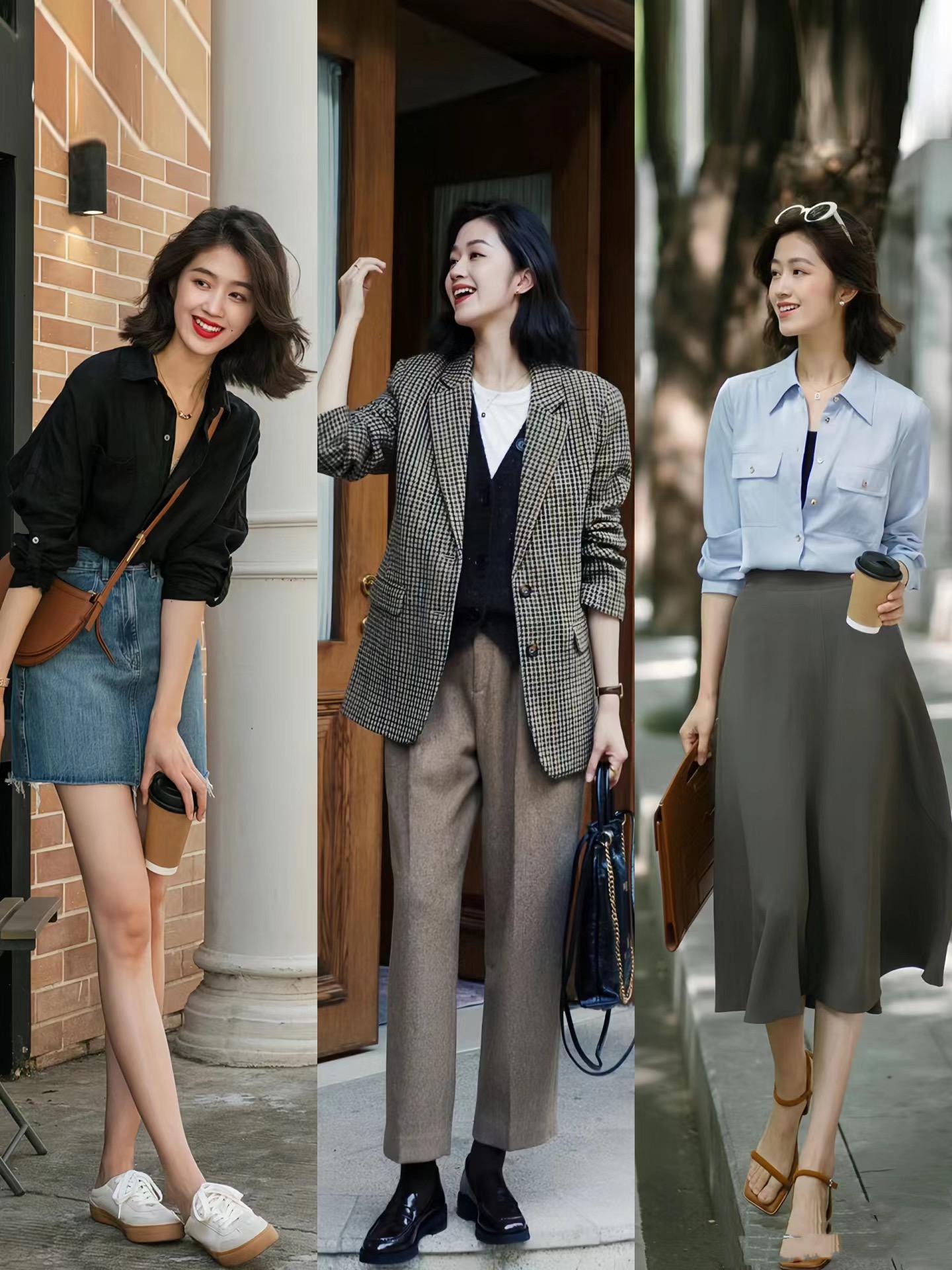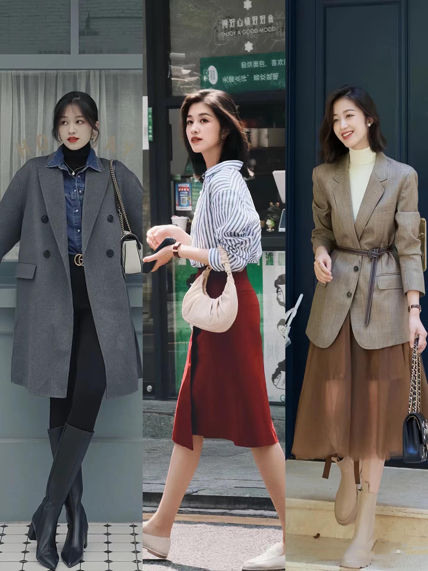 都市小女人風穿搭,更多的選擇一些精緻考究的潮流單品,搭配上也善於運用精緻配飾。比如西服外套+半身裙,配細腰帶/皮帶的點綴,就多了女性的精緻與溫柔。