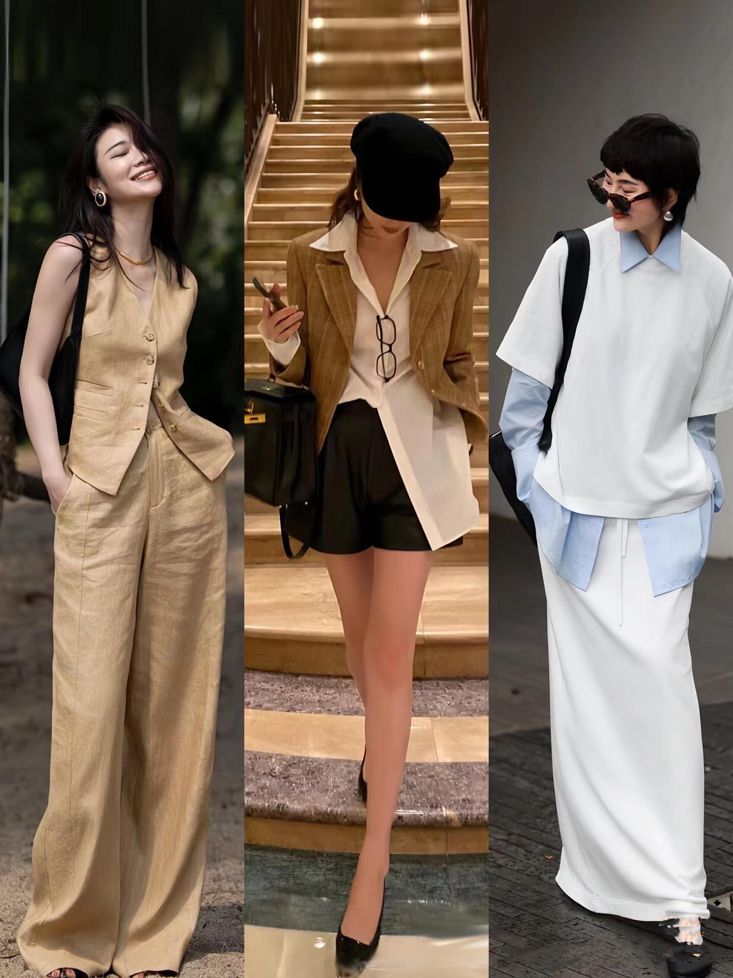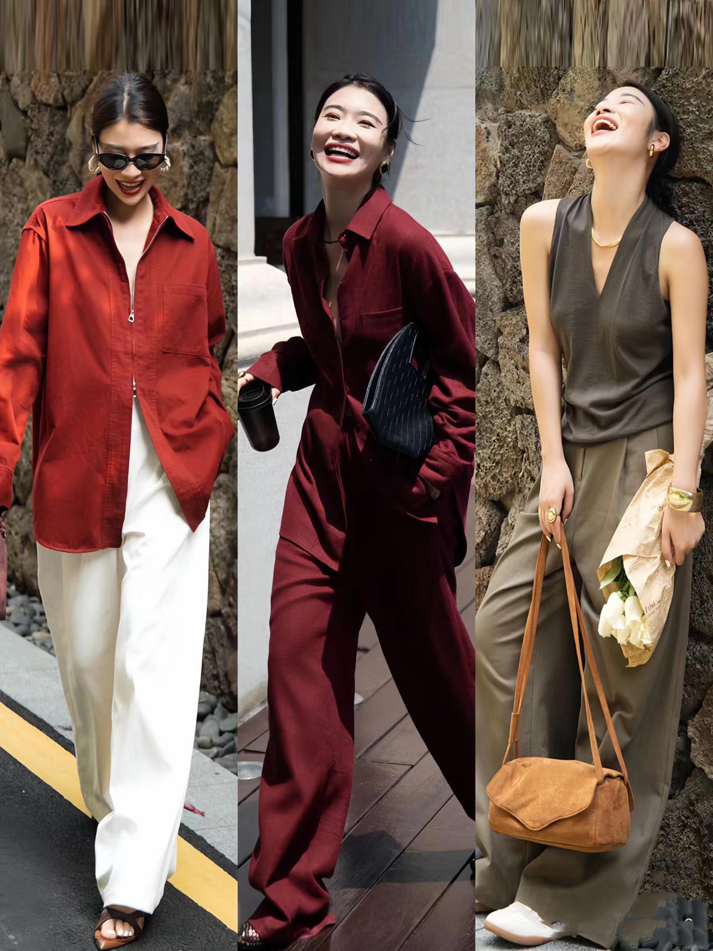 千萬不要選擇太緊身的服裝款式,我們可以嘗試寬鬆襯衫、寬鬆西服、錐形褲、西裝褲或者闊腿褲。當然精緻高跟鞋,也是舒適穿搭的點睛之筆,提升細節品味。