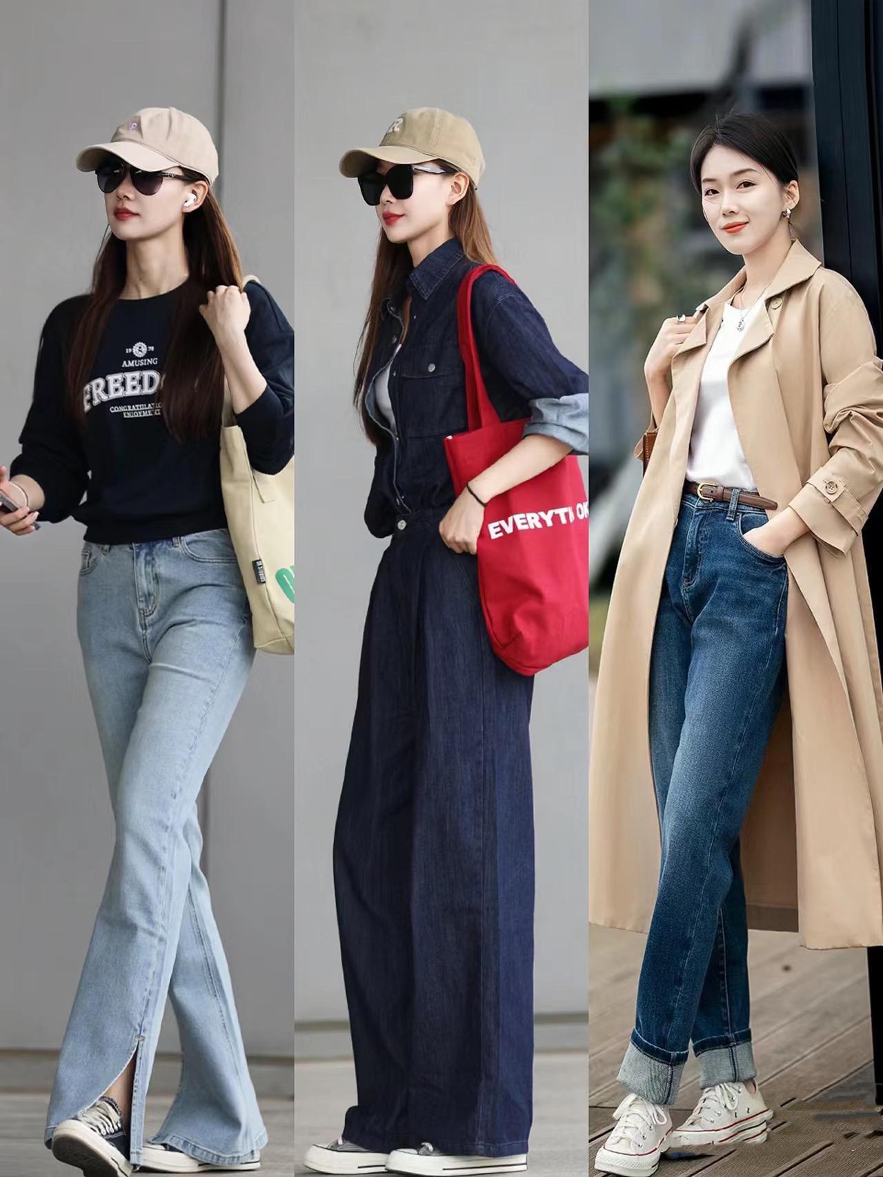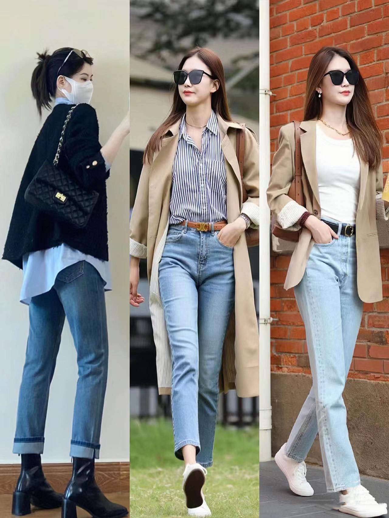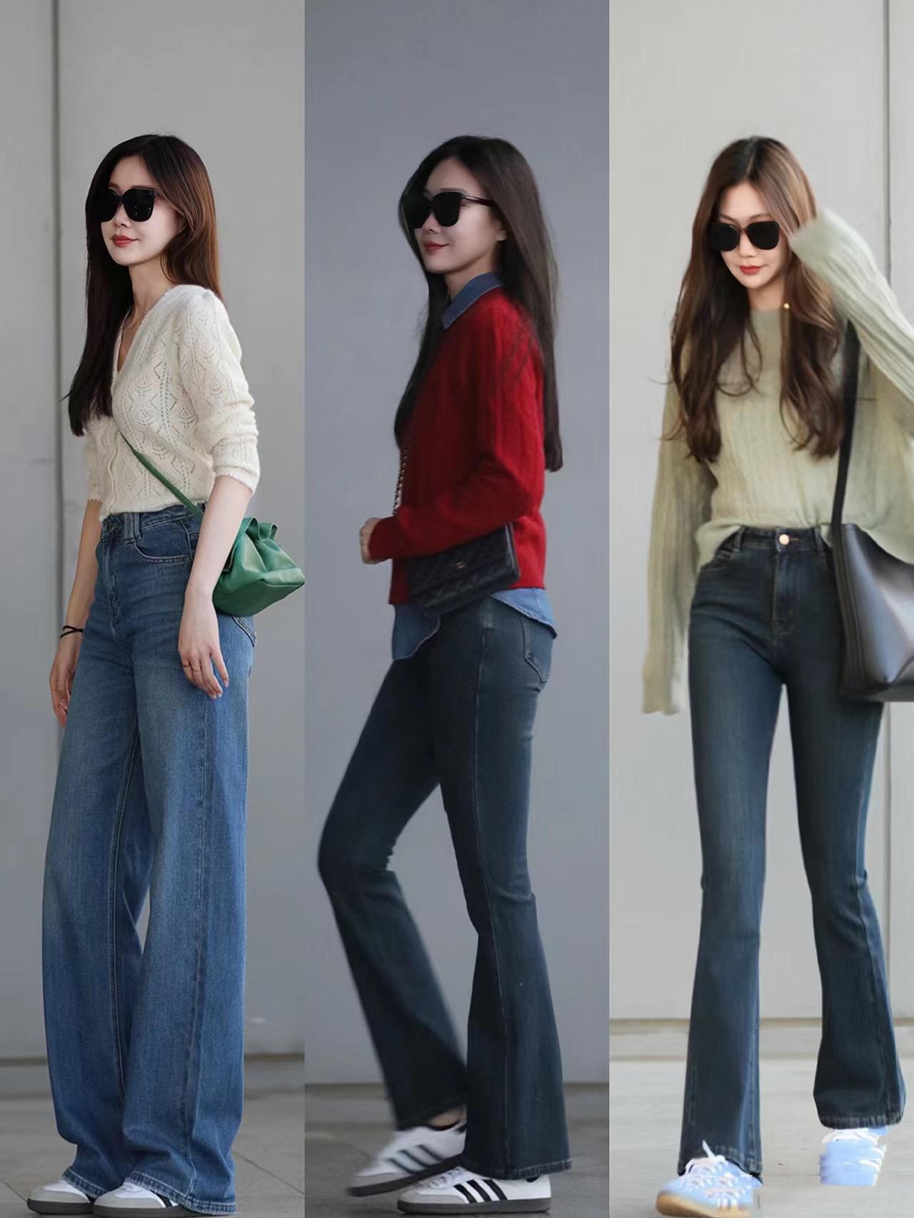 除了針織衫,基礎款的毛衣、或者毛衫,在秋天裏搭配牛仔褲,都是很常見的組合。