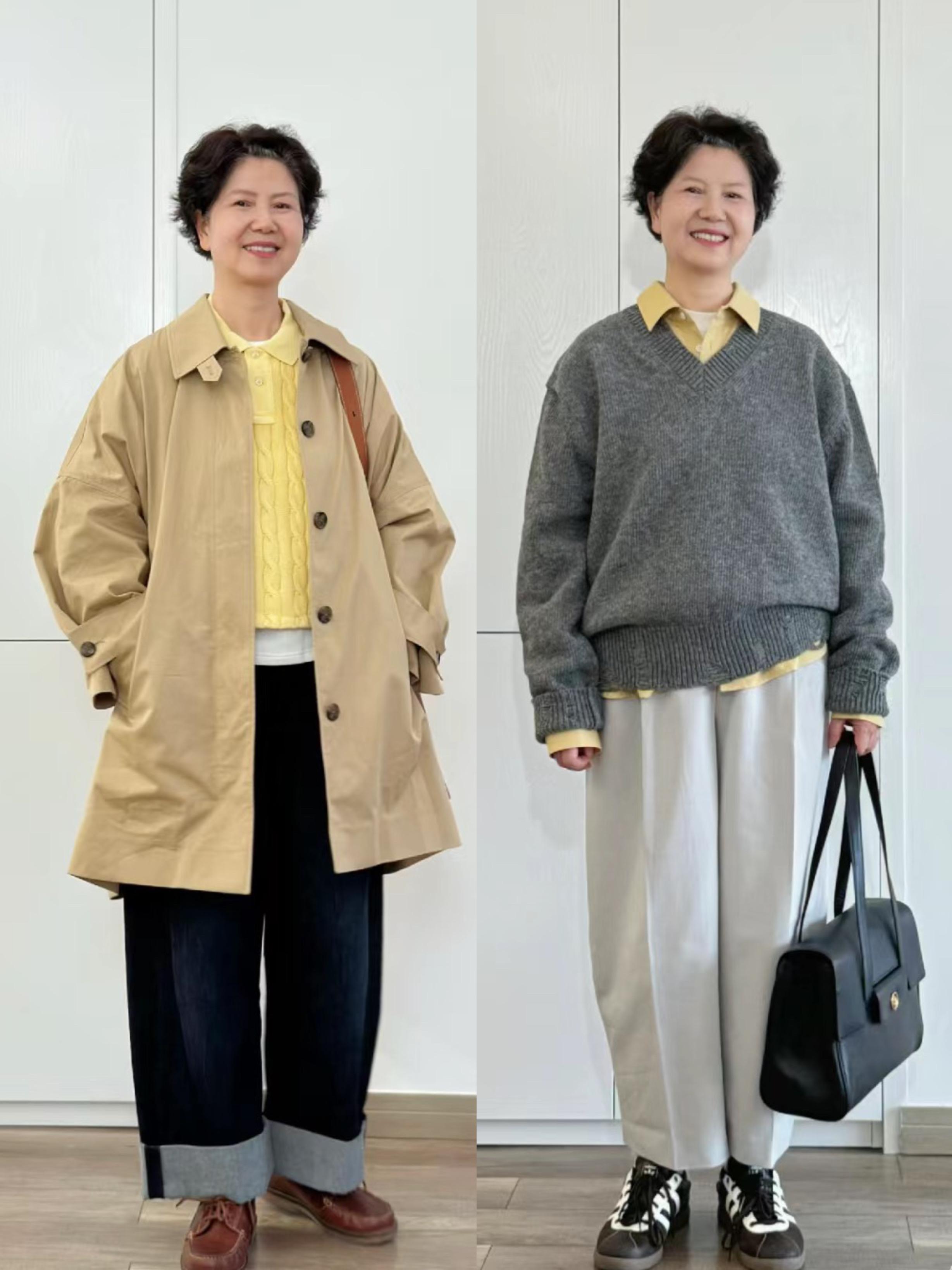這位從來不把年齡放在身上的女人,60+的年紀、更偏愛寬鬆、舒適、的休閒風穿搭,既保暖又好看,比強行扮嫩更高級!