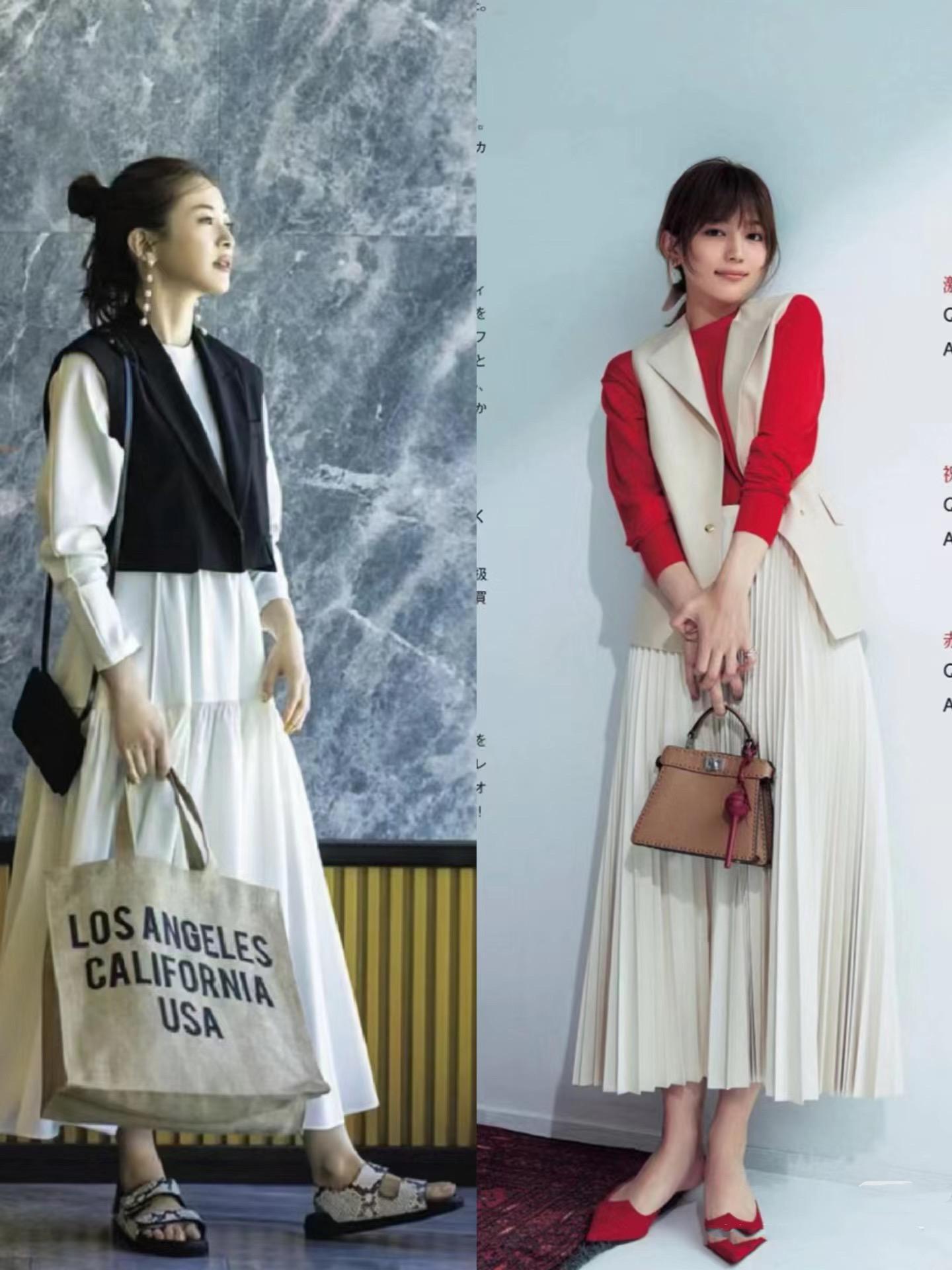 針織披肩配白色T恤,或者白色馬甲配修身打底衫,都屬於一種經典又常見的疊搭方式,40+女人的優雅與時尚,都藏在不經意的細節裏。