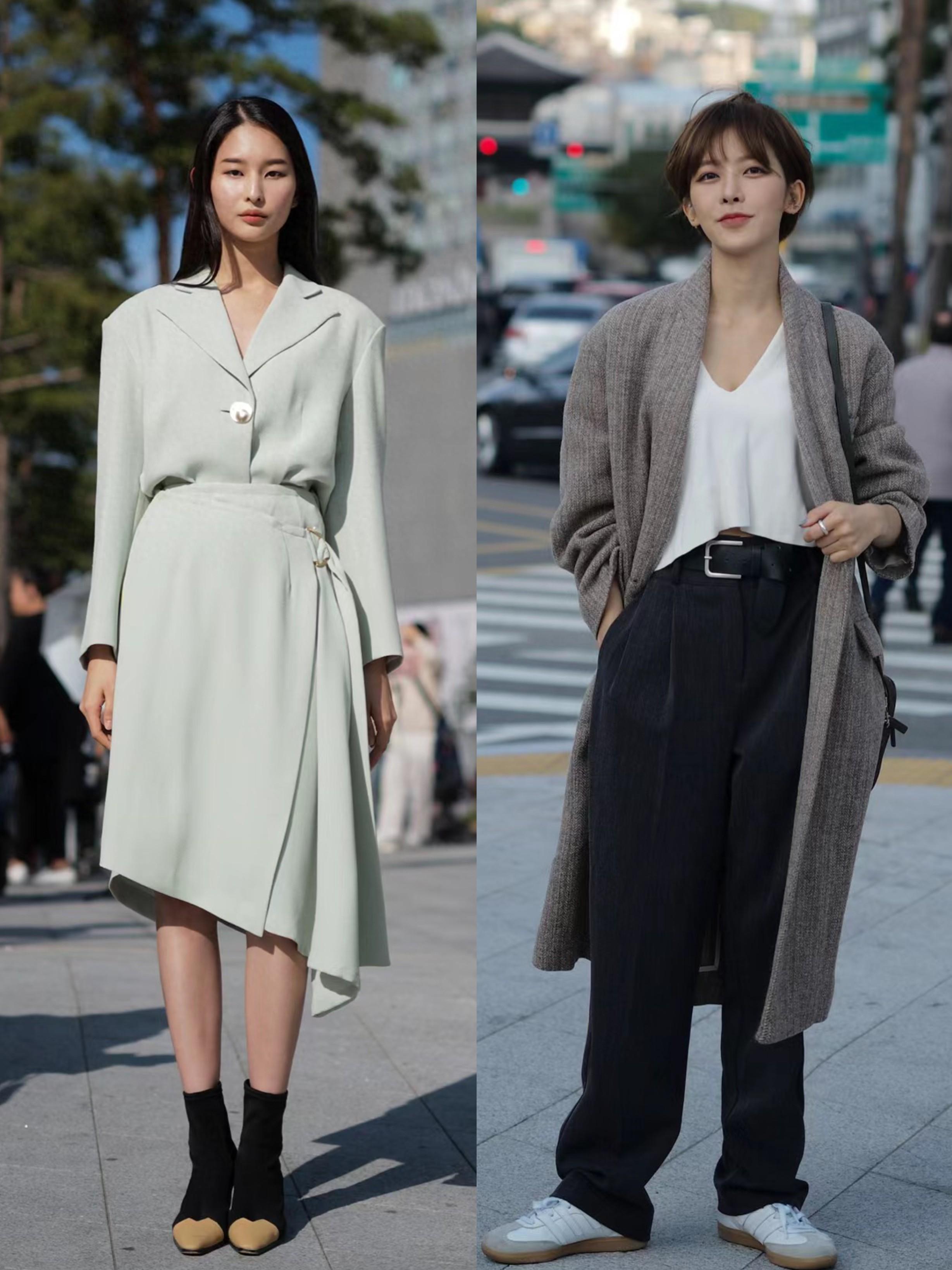看首爾街拍,就掌握了韓系穿搭的精髓,看似簡約、卻更加時髦新穎。不管是套裝、還是套裙,都有自己的心機。