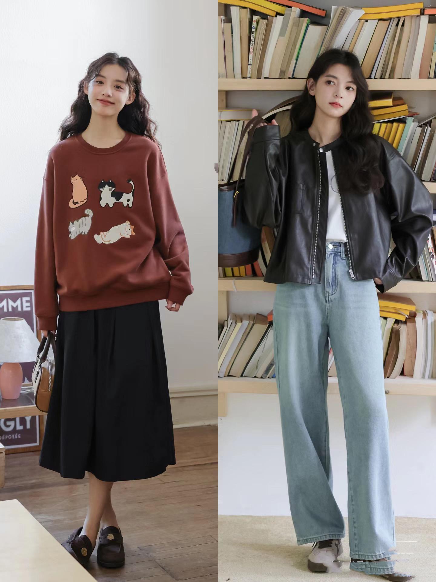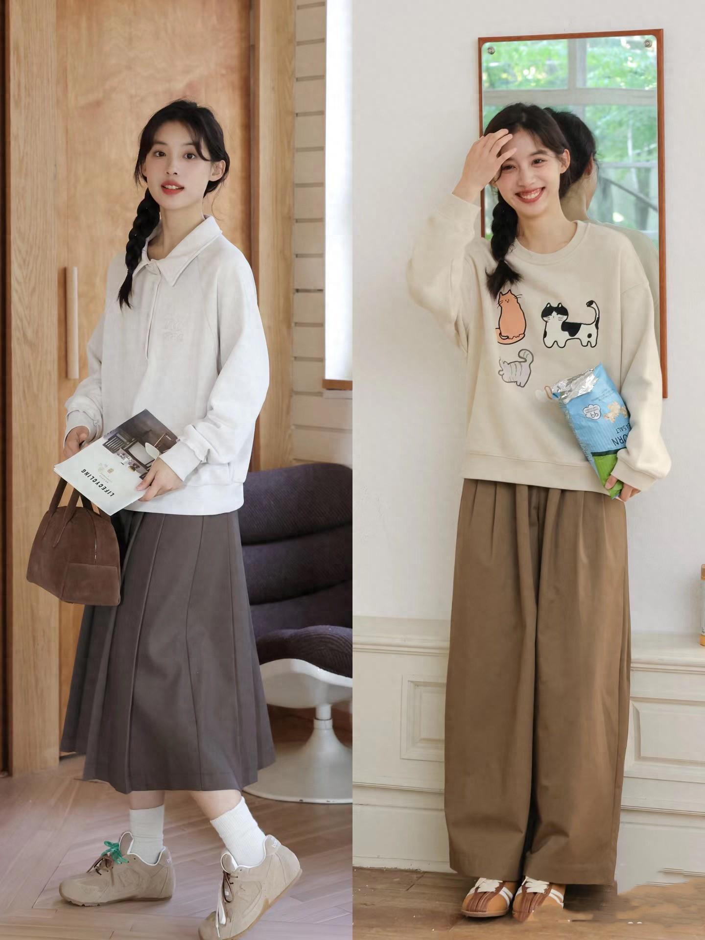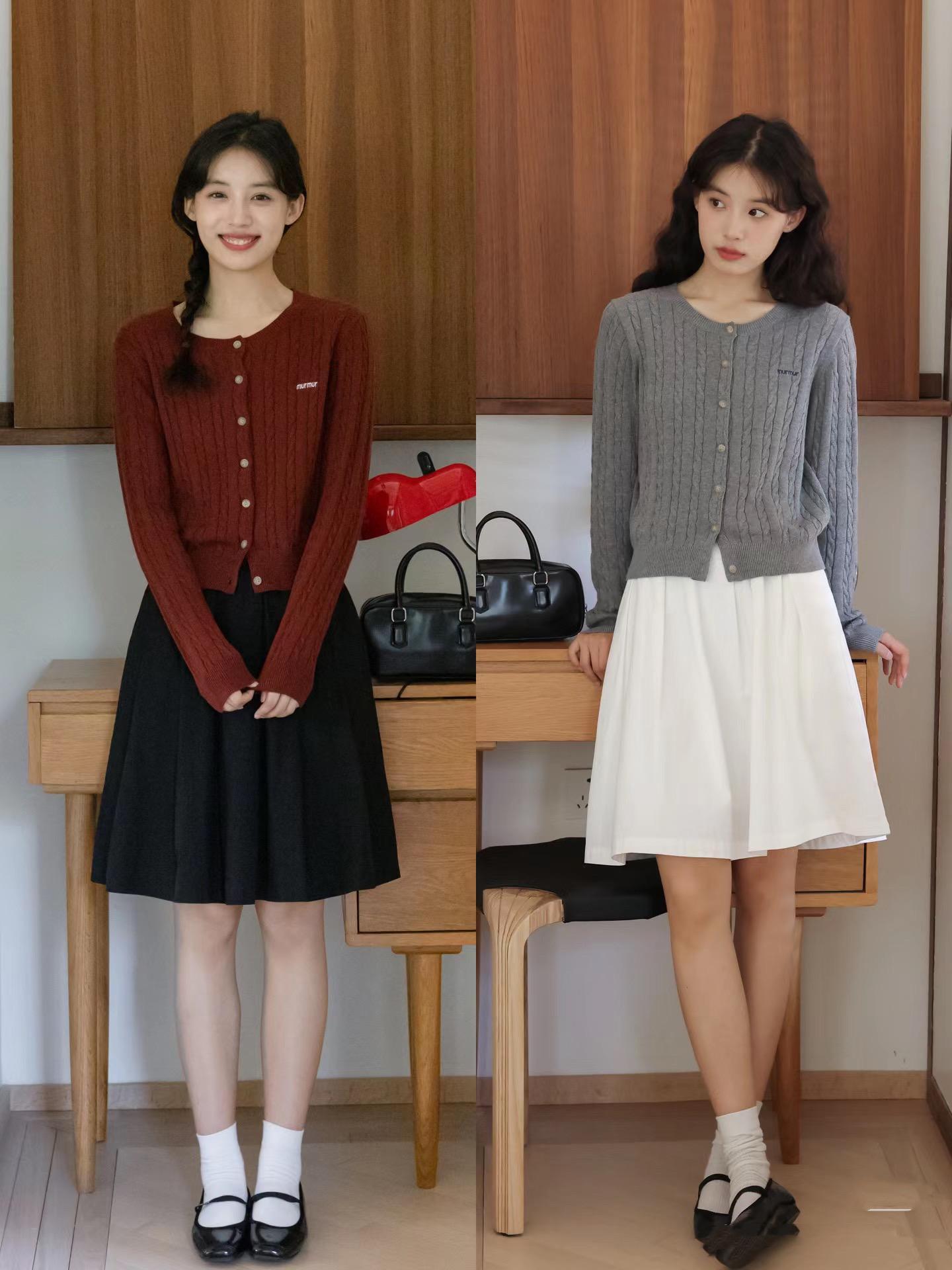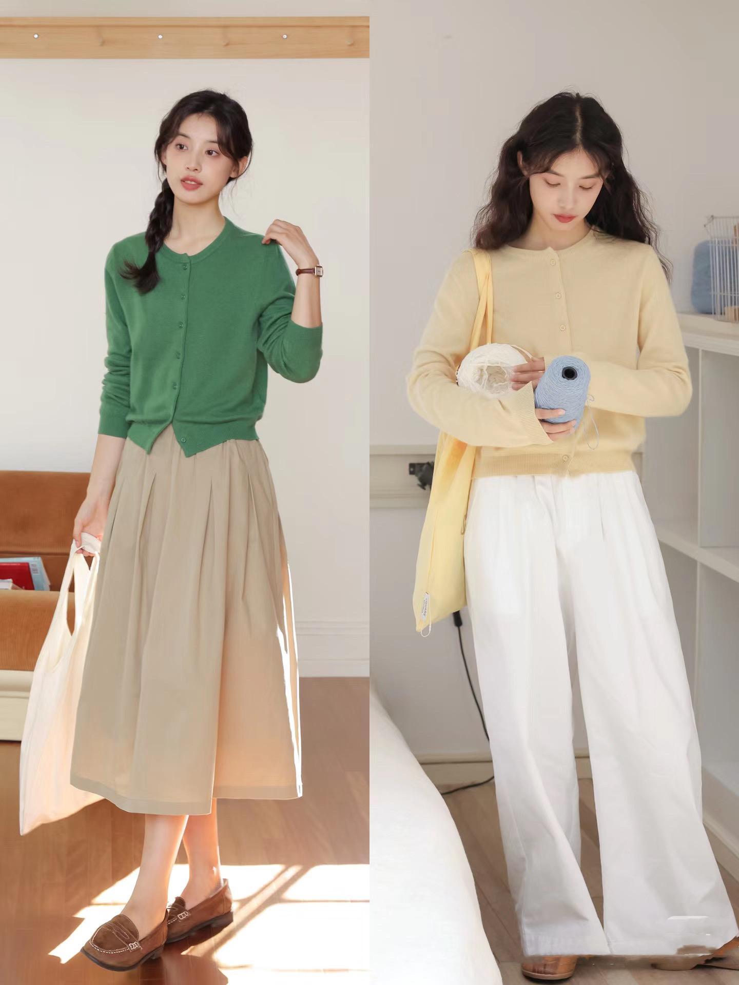 就像黑色針織衫,配深藍色直筒褲,淺灰色針織衫,配白色高腰半身裙。