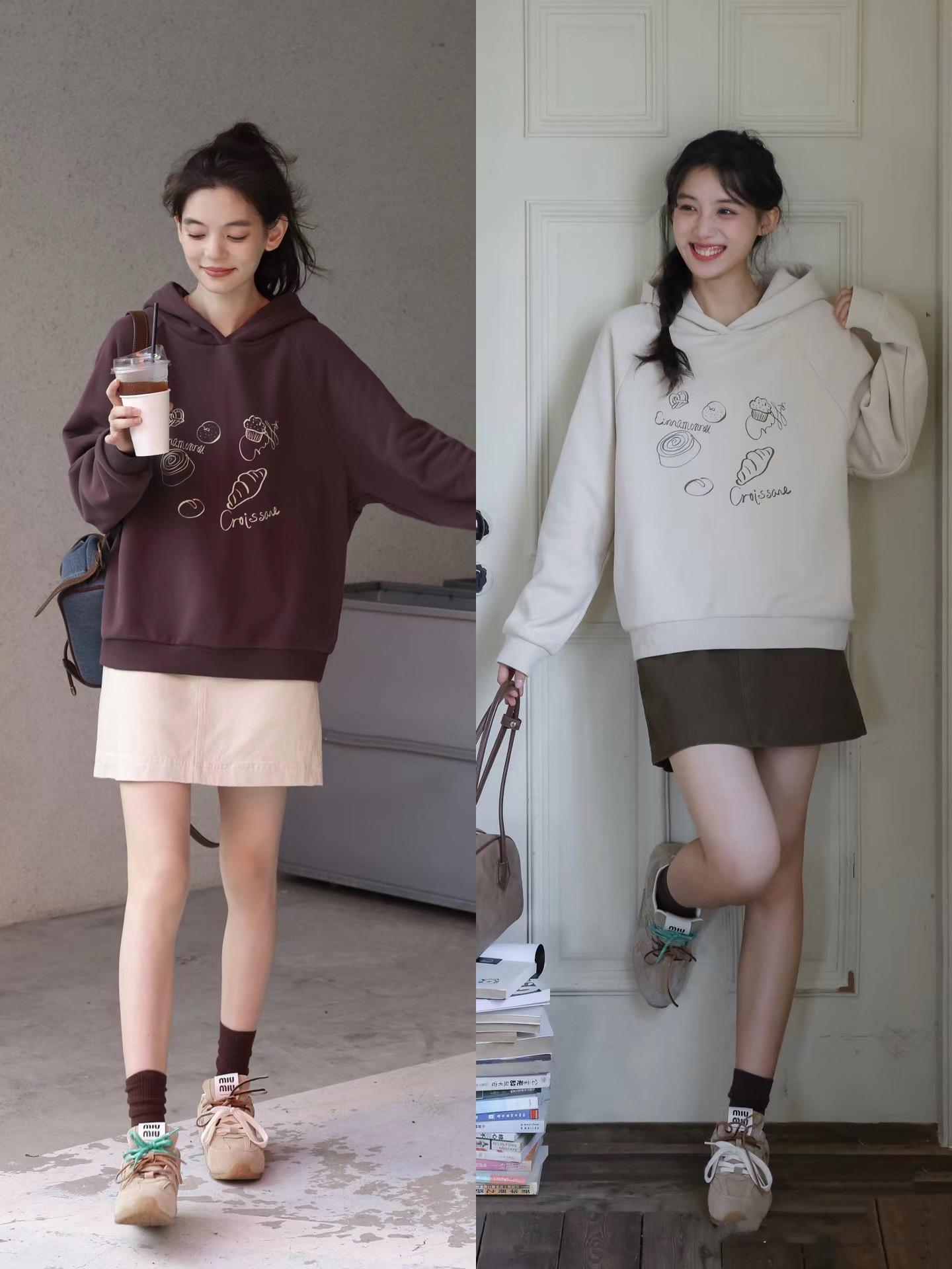 寬鬆的衛衣,配上短款的半身裙,露出雙腿線條、視覺上就輕盈了很多。這一組簡約穿搭,雖然設計感不強、卻很時髦顯高。