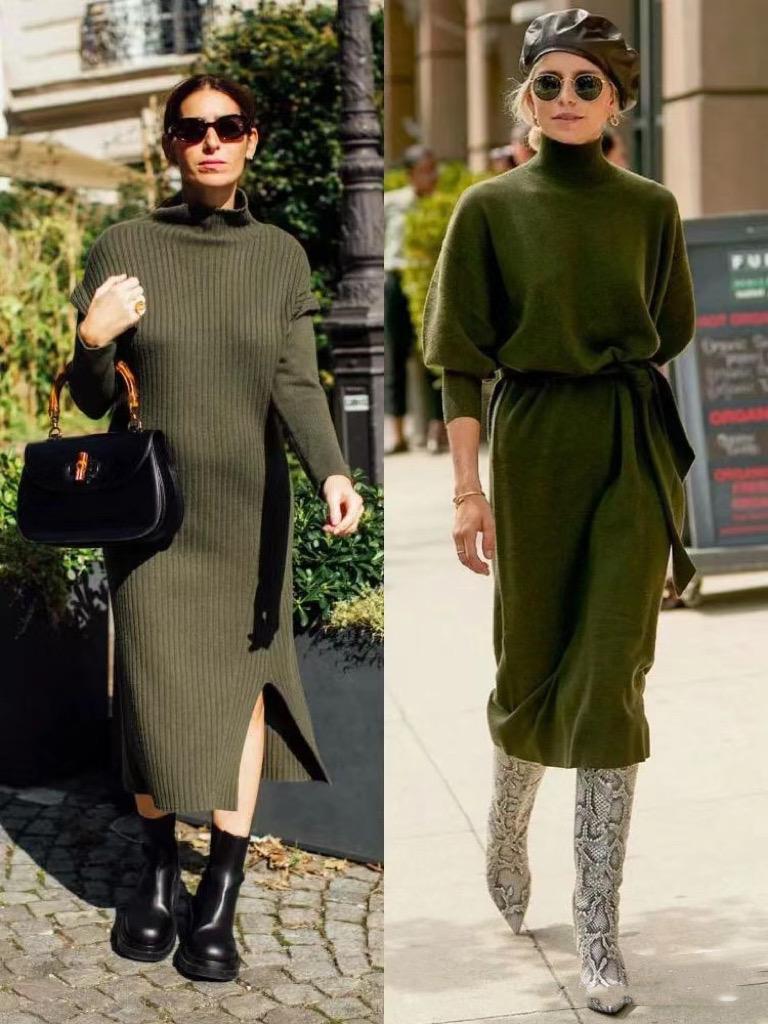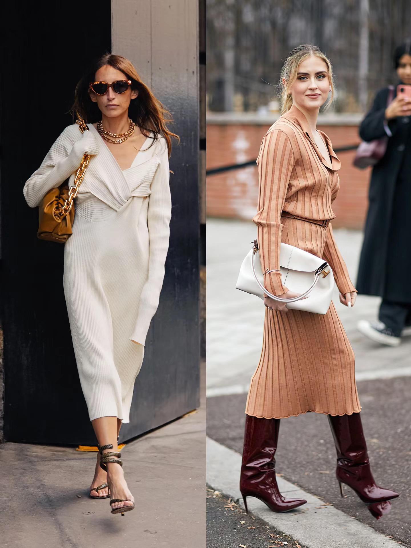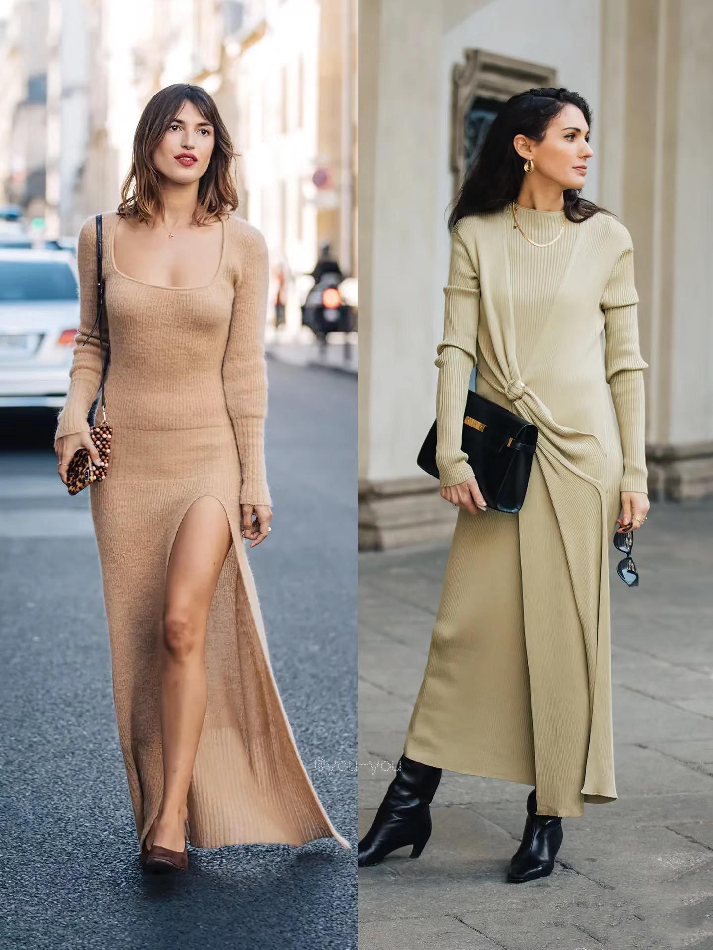看歐美街拍才明白,“針織連衣裙”可美可颯,時髦精都在穿!