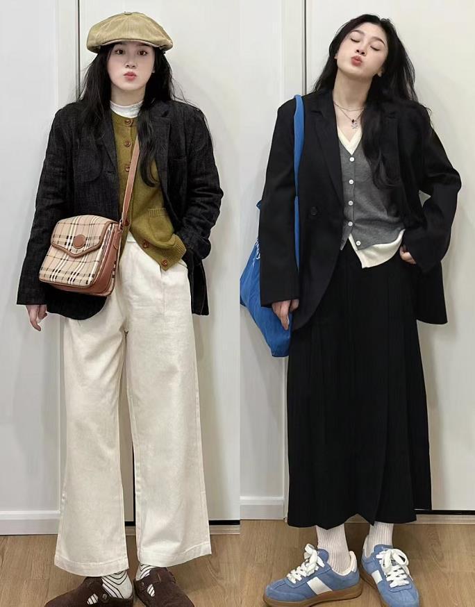 今年秋冬最流行的外套,又怎能少了一件西裝外套呢?不管是黑色,還是灰色,都是很值得入手的,寬鬆版型的黑色西裝,可真的一點都不挑身材。下裝可以搭配褲子,也可以配裙子,內搭利用起疊穿,應對寒冷的秋冬正合適。