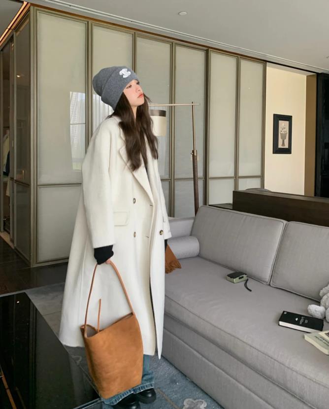 奶呼呼的米白色大衣,自帶慵懶和隨性,真的是超級喜歡這種版型大大的,對身材沒有一點約束感,包容性極佳的,顯瘦又藏肉。選擇一條牛仔闊腿褲,這麼穿不僅減齡,還很好看。