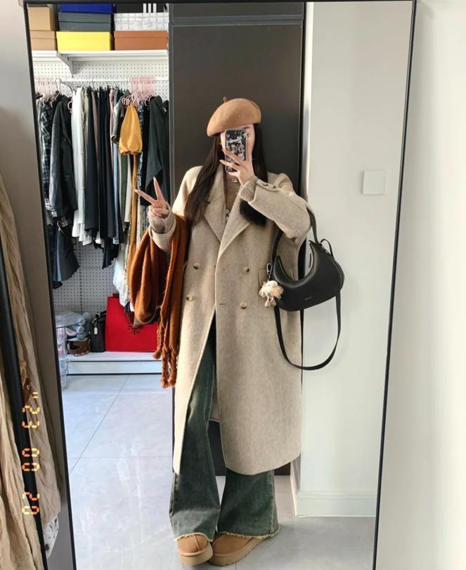 進入秋冬後,燕麥色的大衣也是非常流行的,這個色調不僅經典耐看還時髦,完全不挑膚色的,大衣的面料很柔軟舒適,版型是寬寬大大的,真的是一點都不挑身材,藏肉又顯瘦,選擇一條牛仔褲來配,太減齡了。