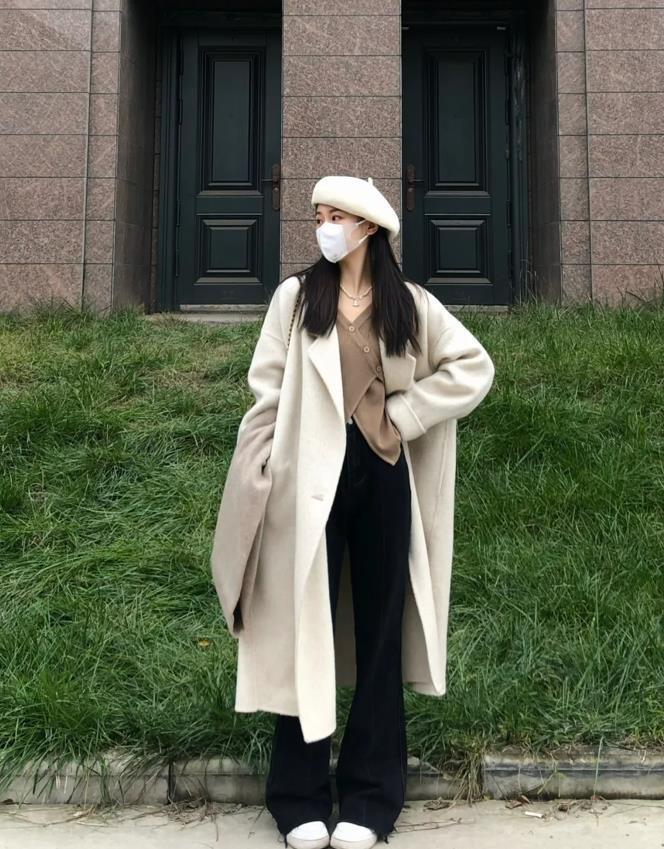 米白色的大衣穿起來也太好看了,實在是太喜歡了,簡約大方的款式,怎麼穿都不會出錯,也能打造出高級感。至於搭配,內搭和下裝的選擇也是比較多的,黑色微喇長褲,修飾腿部線條的同時,還能巧妙拉長身高。