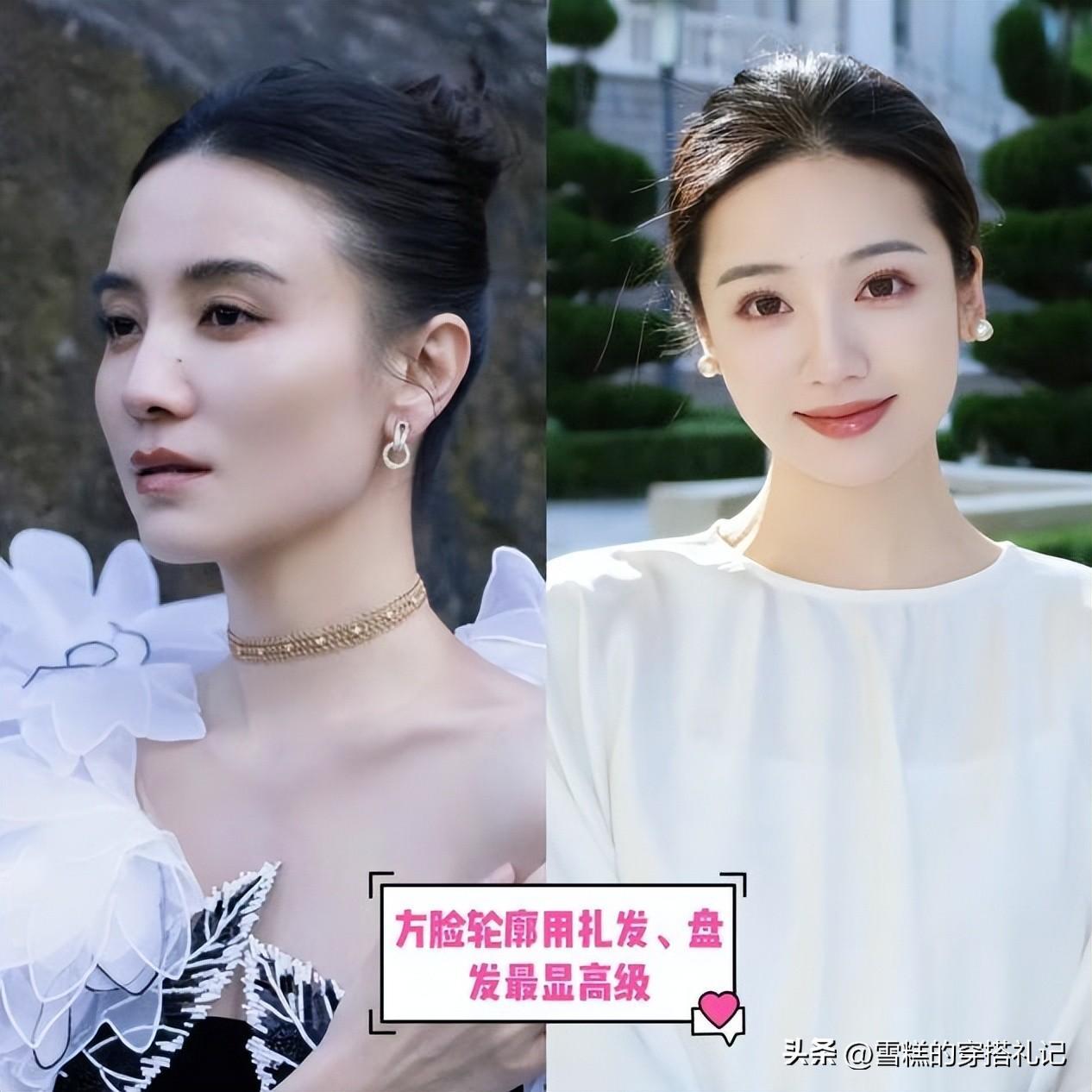 比較典型的方臉女性千萬不要將頭髮散下來,不然“國字臉”的輪廓會更爲明顯,顯臉大不說還會多少影響到顏值呢,所以最適合的就是將頭髮紮起來,像大波浪的半扎發或者優雅的將其盤起來,額頭的兩邊位置留下捲髮的劉海元素修飾臉型的輪廓即可。