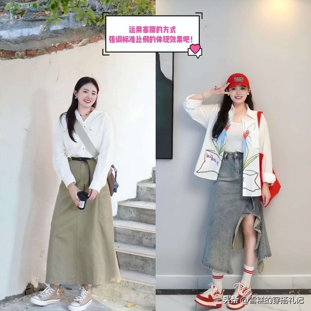 那麼對於各位有點微胖而且屬於小個子的女性來說,在這裏就更爲推薦大家優先於去營造一個標準好看的比例身材顯現出來了呢,首先最常規好用的方法那自然就是塞入褲腰和裙腰的搭配啦,這樣的穿搭就需要大家優選搭配起來很明顯的高腰下裝哦,最好還可以明確的勾勒出來偏高一點的腰線水平位置,這樣的效果可以說是顯高還顯瘦。