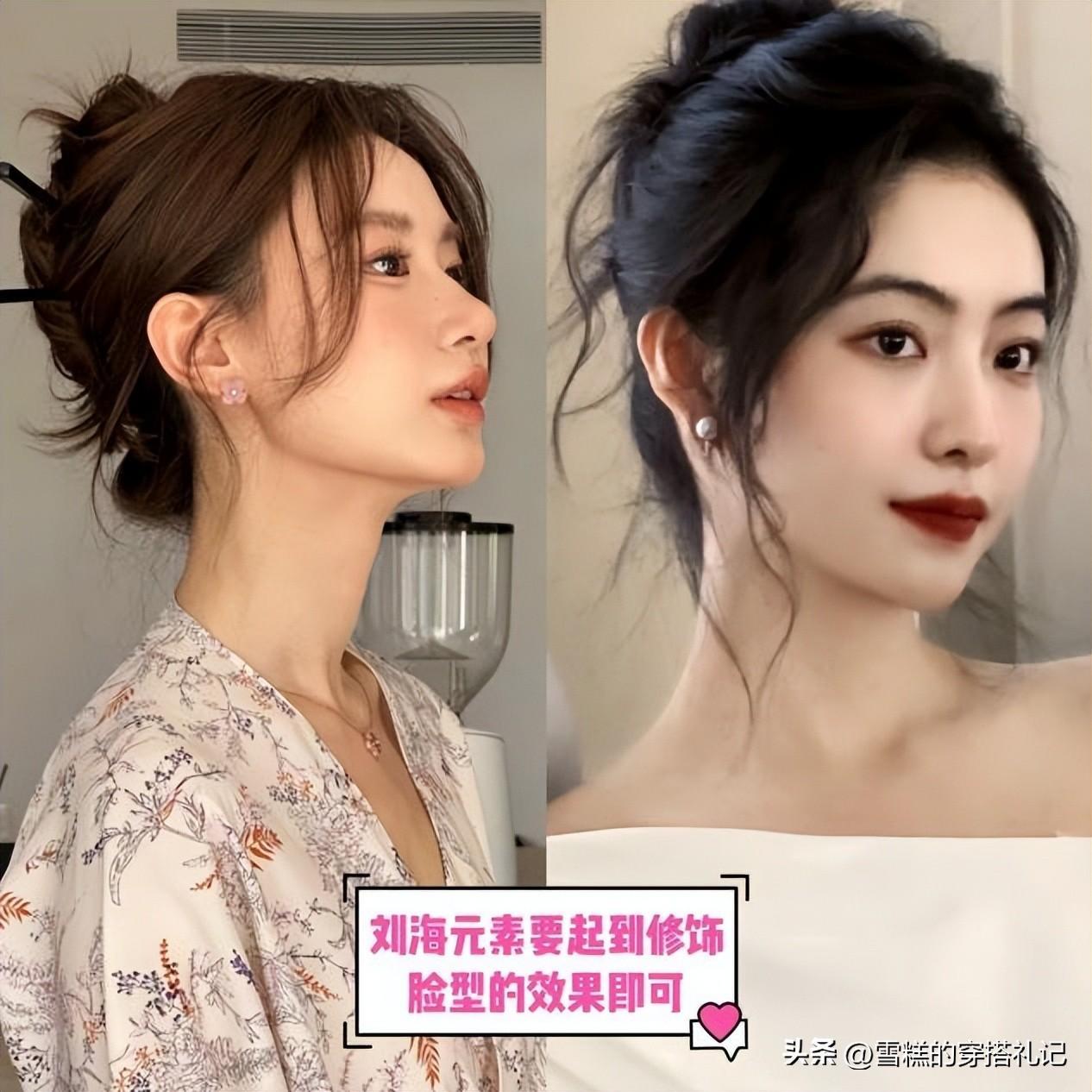 運用盤發發型的時候,也建議大家還是要記得去用一些小技巧哦,尤其是覺得自己的臉型狀態處於輪廓感過於明顯或者棱角明顯的話,真的很有必要留一些碎髮或者是兩側劉海的元素進行修飾了,整體看起來的感覺不讓臉型顯得偏大偏圓,髮際線也可以彰顯的更爲好看呢!