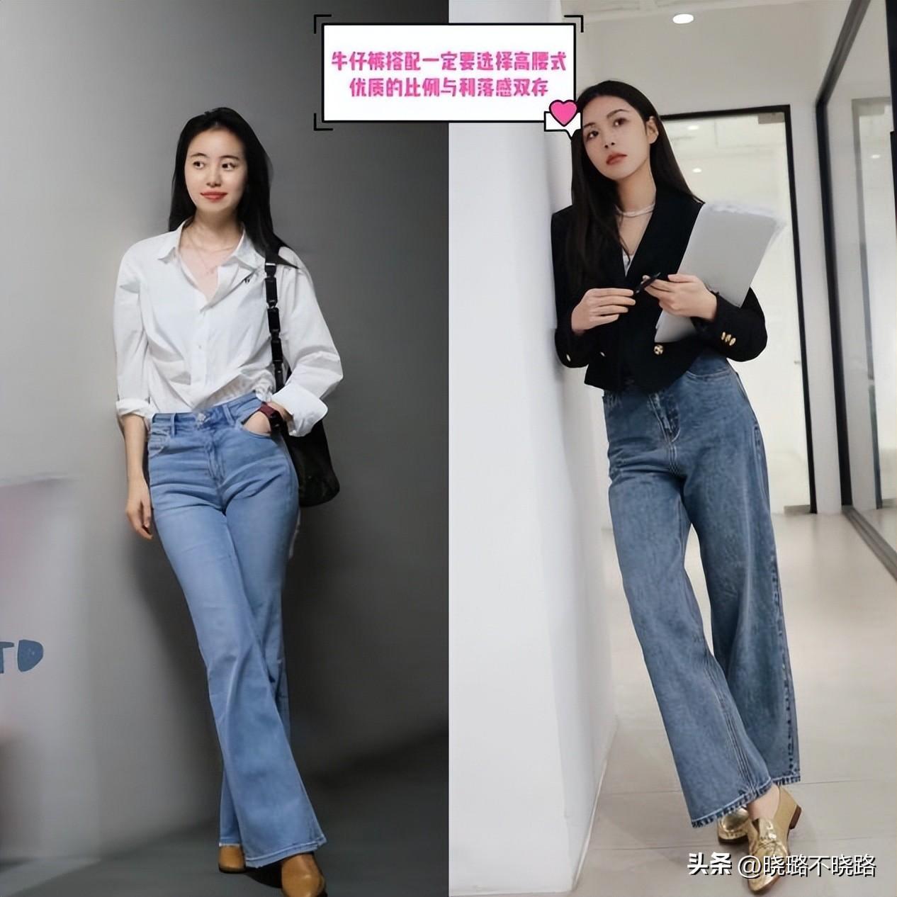 一、相比較於闊腿褲,牛仔褲的穿搭優勢才大