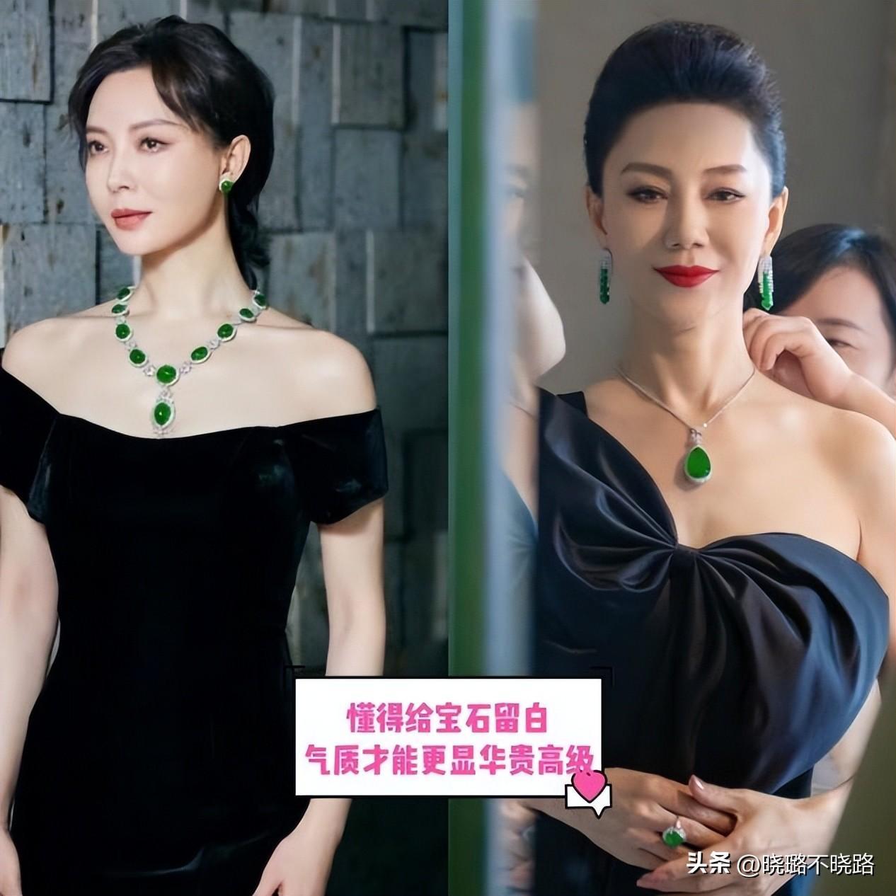 像翡翠或者瑪瑙這樣的寶石系列在進行搭配的時候,其實大家可以觀察一下不少的女藝人或者是豪門千金們,她們往往都會使其成套進行搭配展現,很少單獨出現,是因爲成套的搭配在視覺上更加的具有高級優雅的視覺氣質狀態。