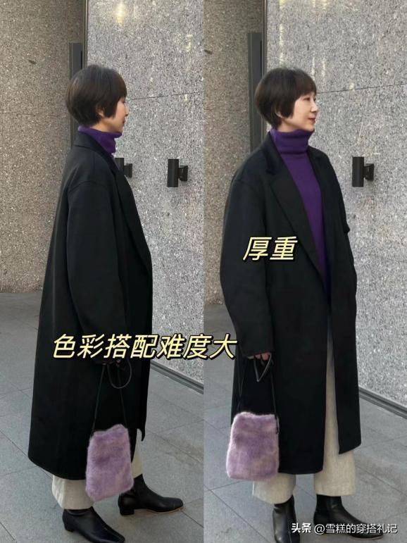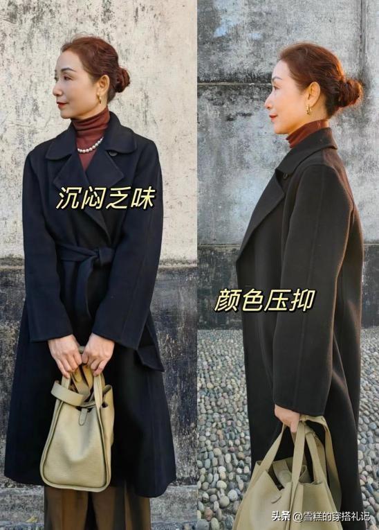 ×沉悶乏味:暗色系外套的一個顯著問題在於其沉悶乏味,缺乏層次感和活力。在冬季,本身環境色彩就比較單一,如果再穿上暗色外套,很容易讓人在視覺上感到壓抑,無法展現出成熟女性的活力與風采。