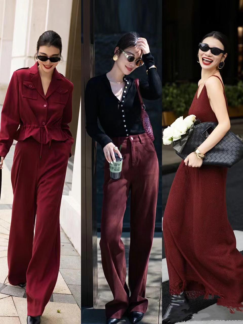 大女人風格的穿搭,自然少不了偏向中性風一點的套裝。比如這套酒紅色套裝,配一雙黑色高跟鞋,走起路來時髦有範好拉風。