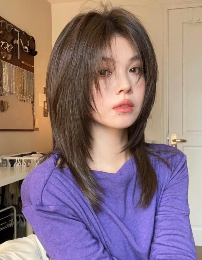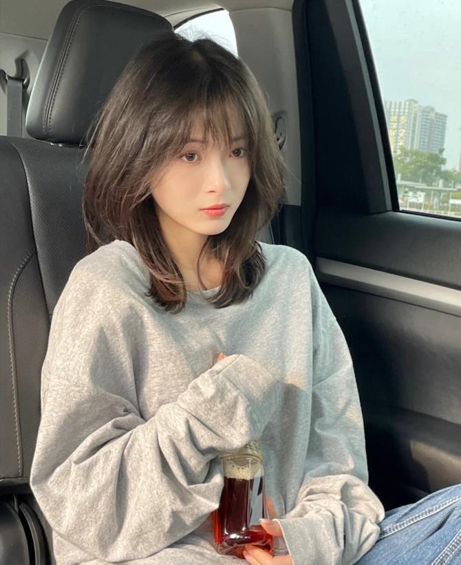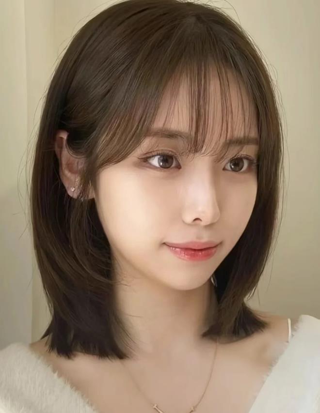 很減齡的空氣劉海,這樣一款劉海髮型,看起來就很減齡瘦臉,整個髮型換起來後很清純大方,修顏的效果也極佳,無論是臉型偏圓,還是偏方的姐妹,都可以試試看,搭配起薄碎的空氣劉海後,就真的是很修顏呢。