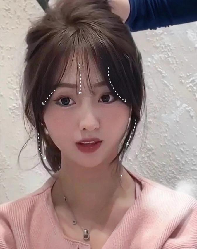 很適合方圓臉、橢圓臉女生的一款八字劉海,真的可以把你的臉型修飾得極佳的,瘦臉的效果看起來就非常不錯,特別是長髮的女生,可以把頭髮紮起來,不僅顯得幹練利落和清爽,也很減齡。