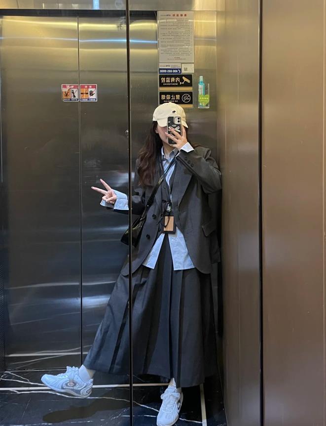 高級灰滿滿的一套,可通勤可休閒逛街,灰色西裝外套+襯衫+毛衣馬甲,內搭利用起疊穿,可真的是太顯層次和時髦了。選擇灰色百褶半身長裙,有種格雷系的搭配,搭配起一雙白色運動鞋,還有種很隨性的範。
