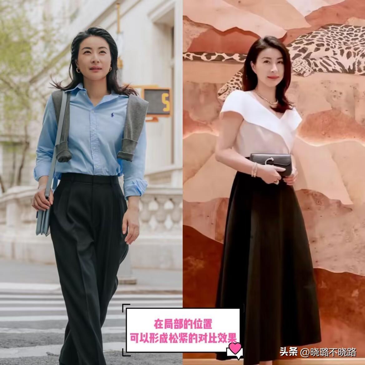 在穿搭當中真的很推薦大家多多借鑑的方式就是,最好展現出來很標準好看的身材比例線哦,尤其是在中年階段的時候,上短下長的標準比真的是會影響着身材和氣質兩個重點方向的,利用塞入褲腰、裙腰的方法or可以直接搭配適宜的單品版型。
