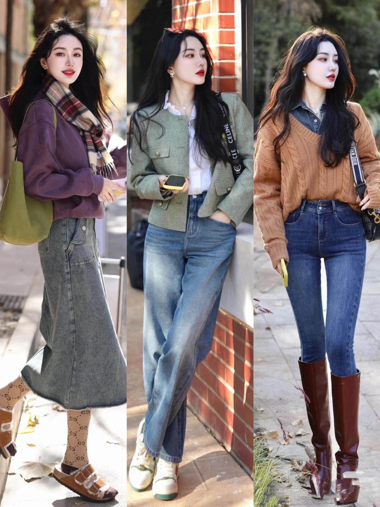 秋天裏最常穿的基礎色以卡其、牛仔、白色、黑色、棕色等爲主。這些色系簡潔高級、大面積的鋪陳也更顯體面優雅。