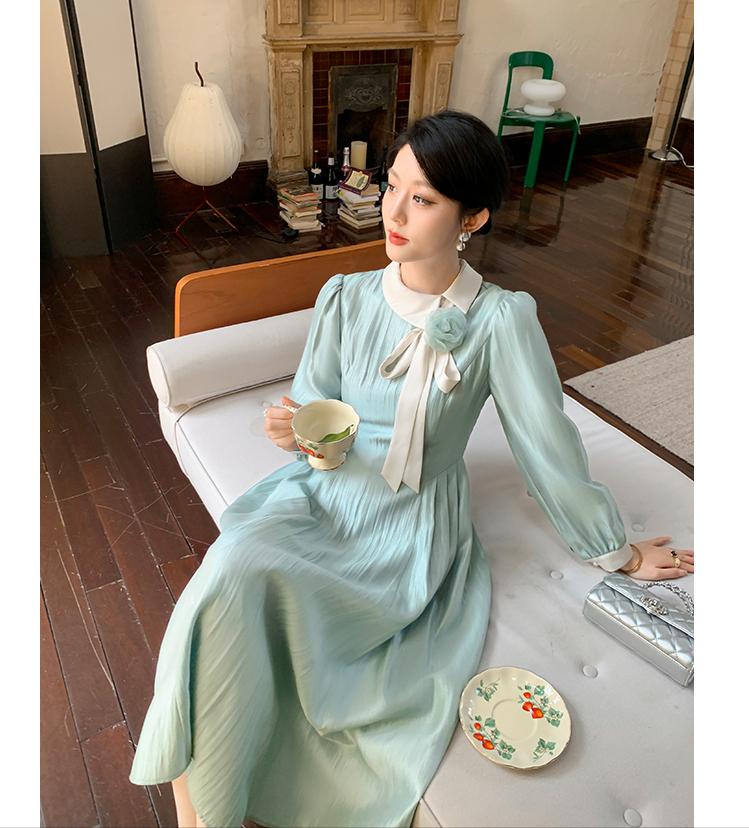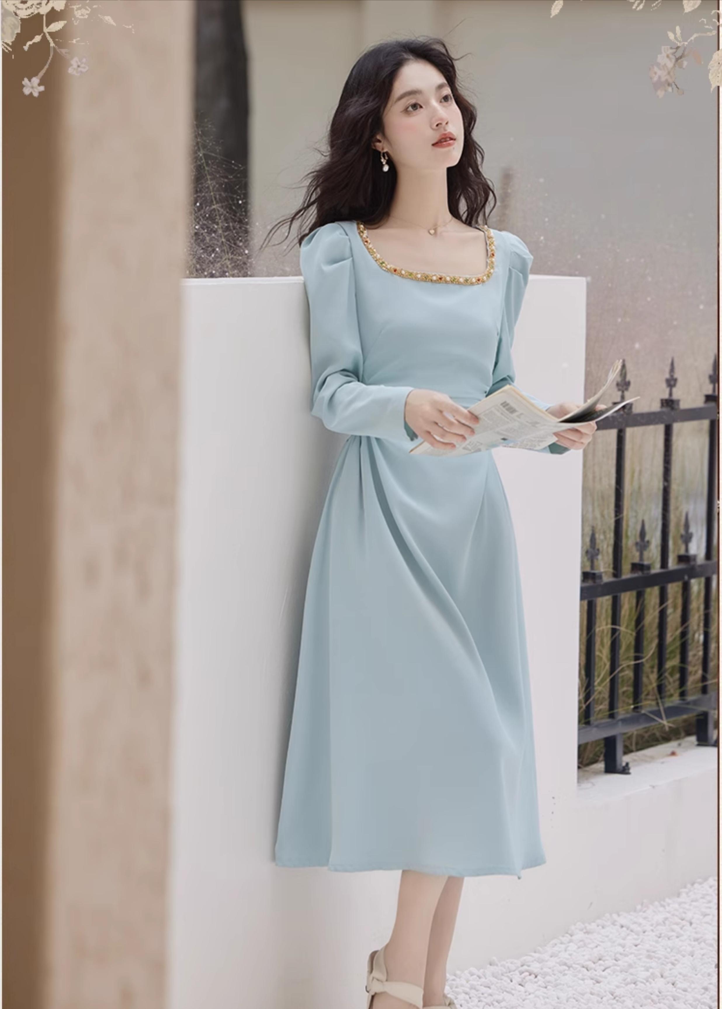 湖水藍方領法式連衣裙