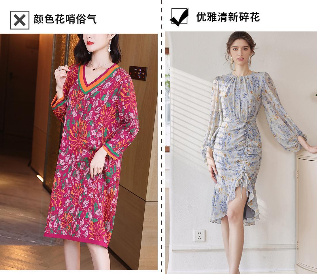 這種顏色多、色彩重、大面積的浮誇印花連衣裙到底是誰在買啊,真的容易讓人顯得俗氣。不僅不好搭配,還給人一種“村裏村氣”的既視感,非常顯“大媽味”。