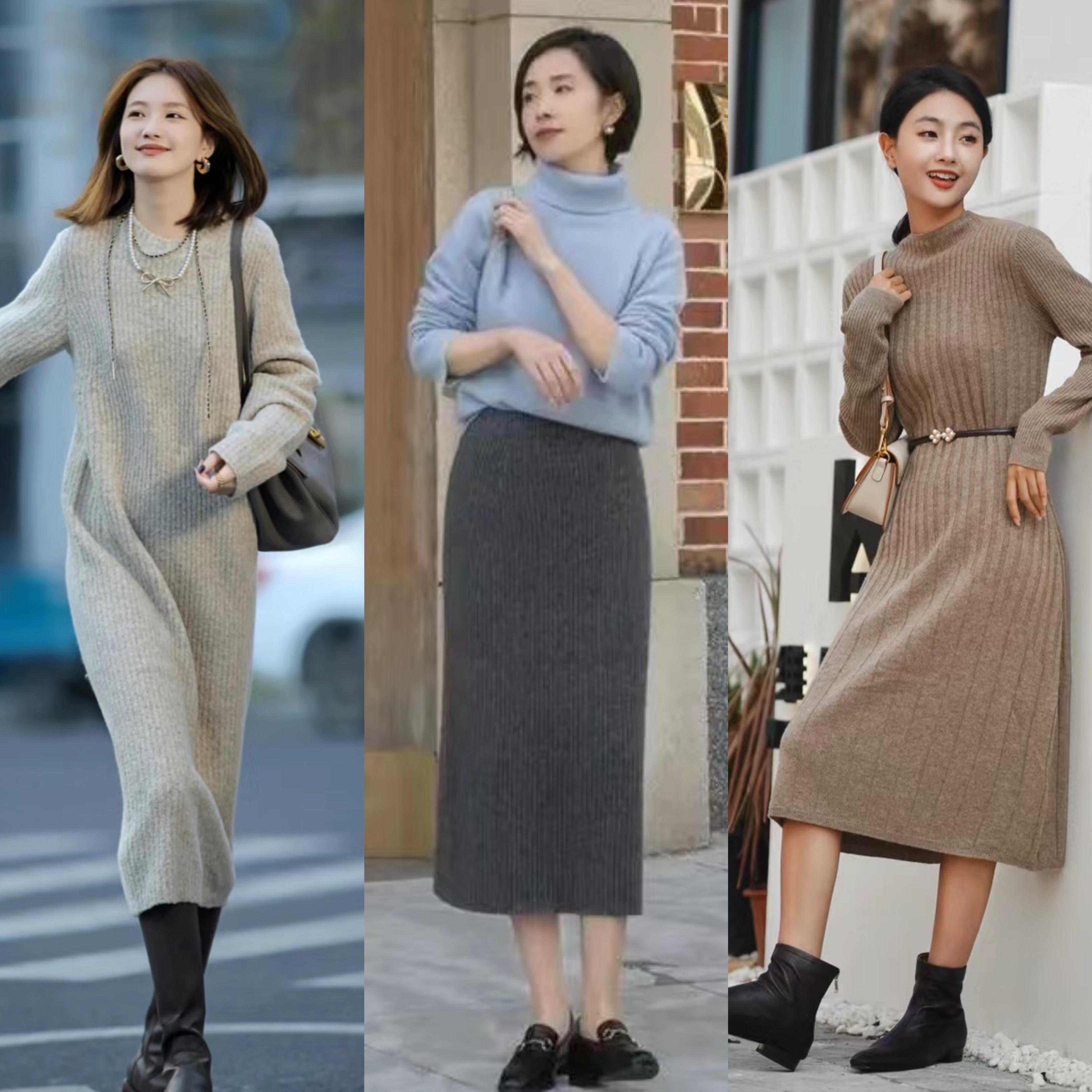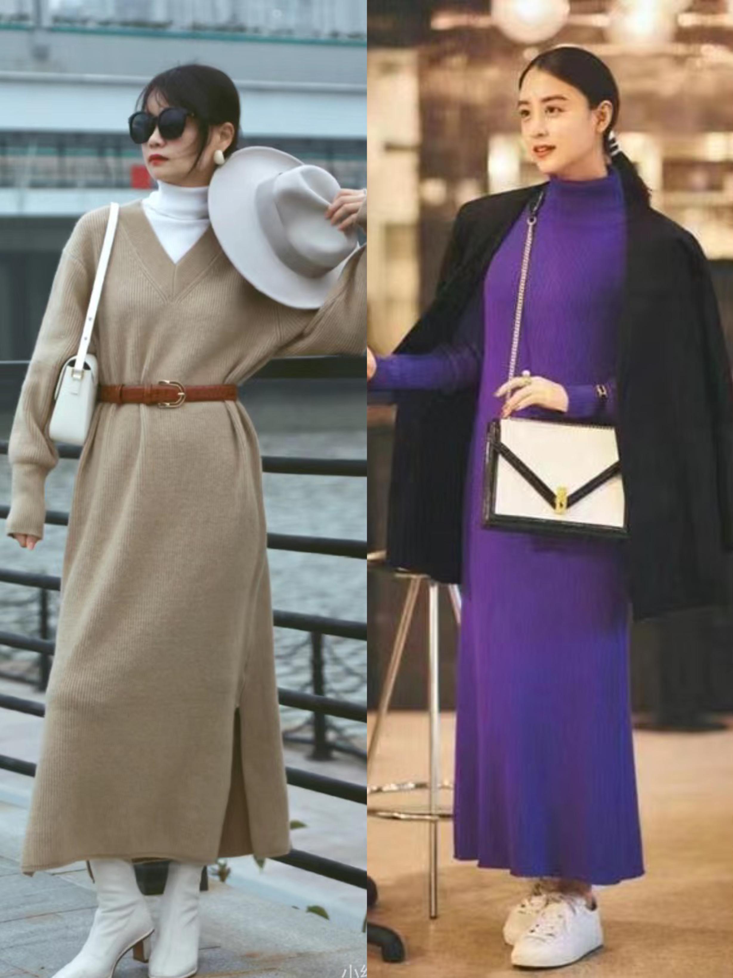 我們選擇針織裙的時候,也自然會遇到半身裙、和連衣裙的選擇。其實針織連衣裙,也可以分爲修身款和寬鬆款。