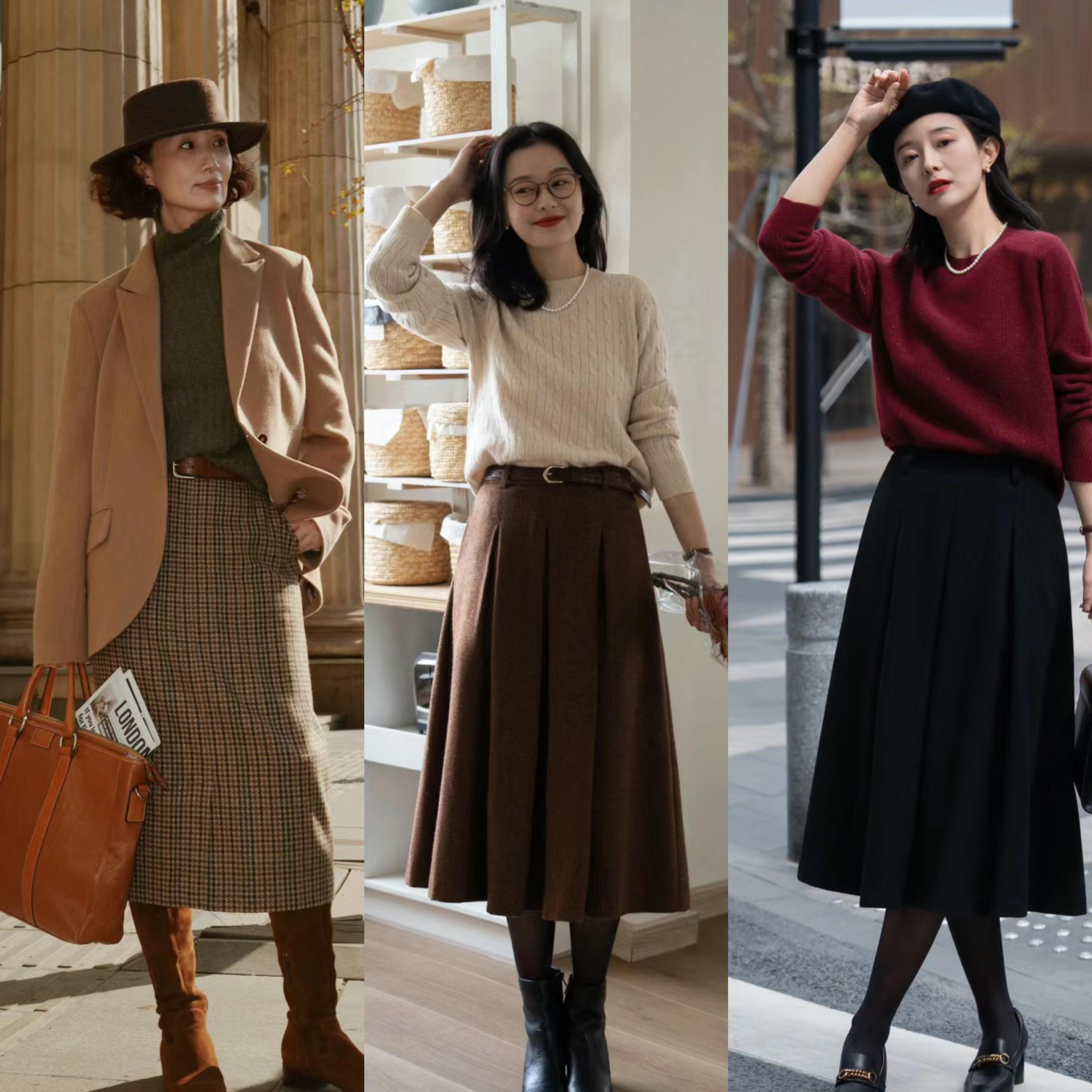 女人不管多大年紀,都應該有穿起裙裝的勇氣。毛呢半身裙屬於一種相對厚重,保暖性和防風性都更強的單品。