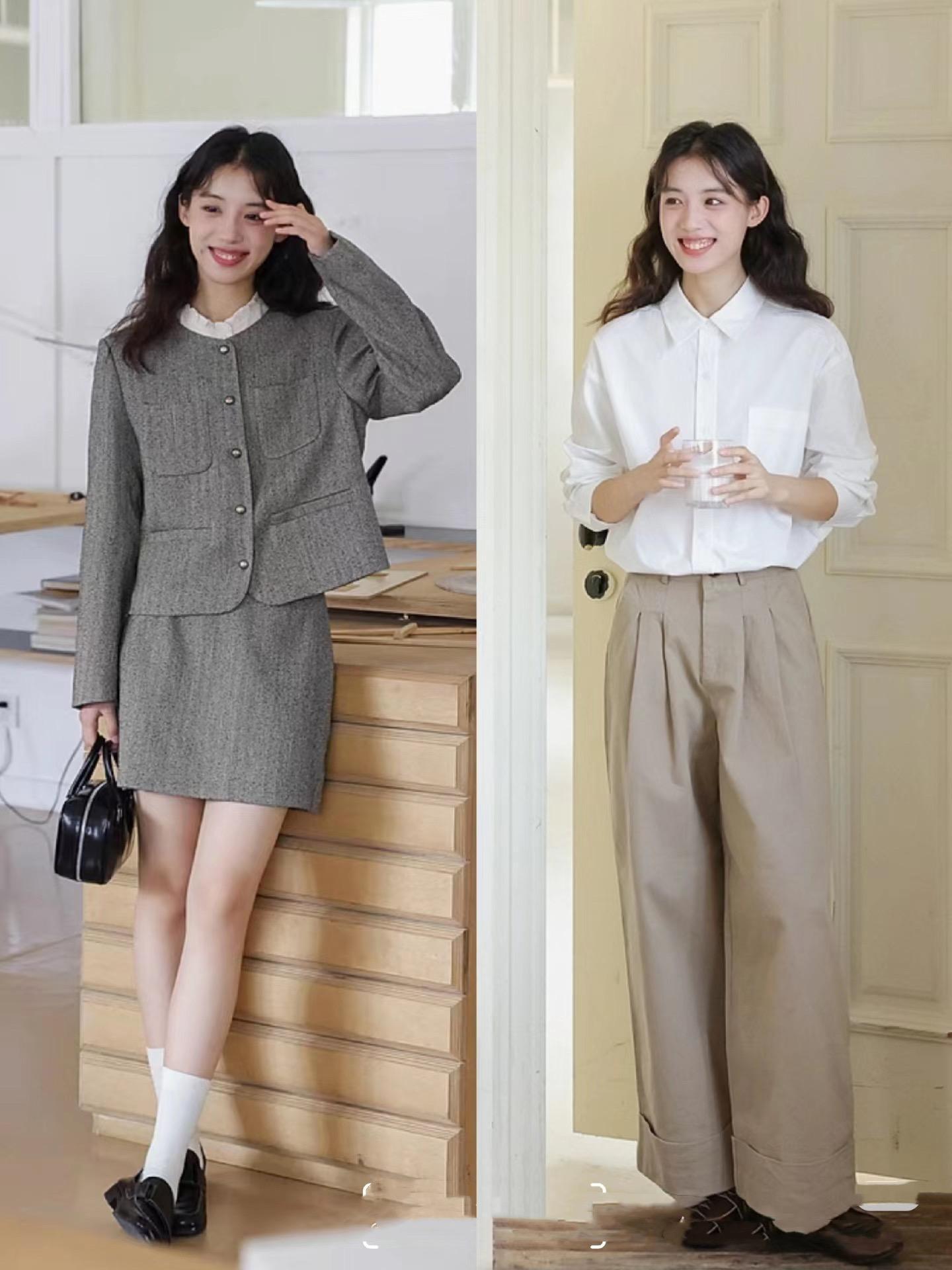 想要更精緻一點,還可以嘗試小香風套裙的穿搭。而小香風套裙,同樣可以秀出雙腿線條,表現出一種輕盈時尚感。