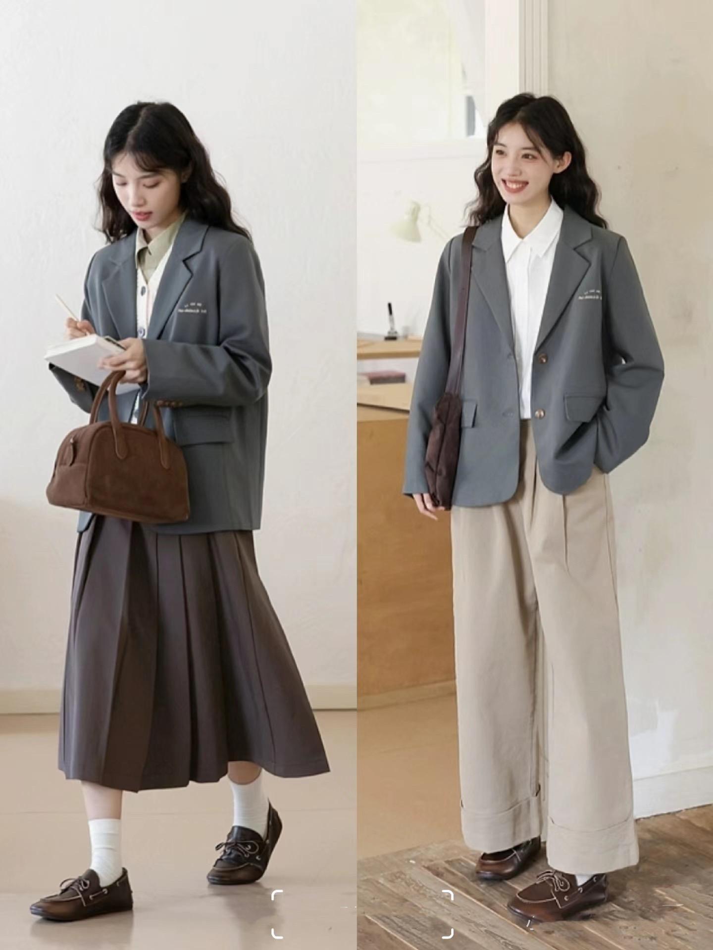 小個子的疊穿原則,就是層次清晰不臃腫。避免邋遢、厚重,千萬別把自己包裹的像個糉子。比如西服+襯衫的疊穿,就利落又洋氣。