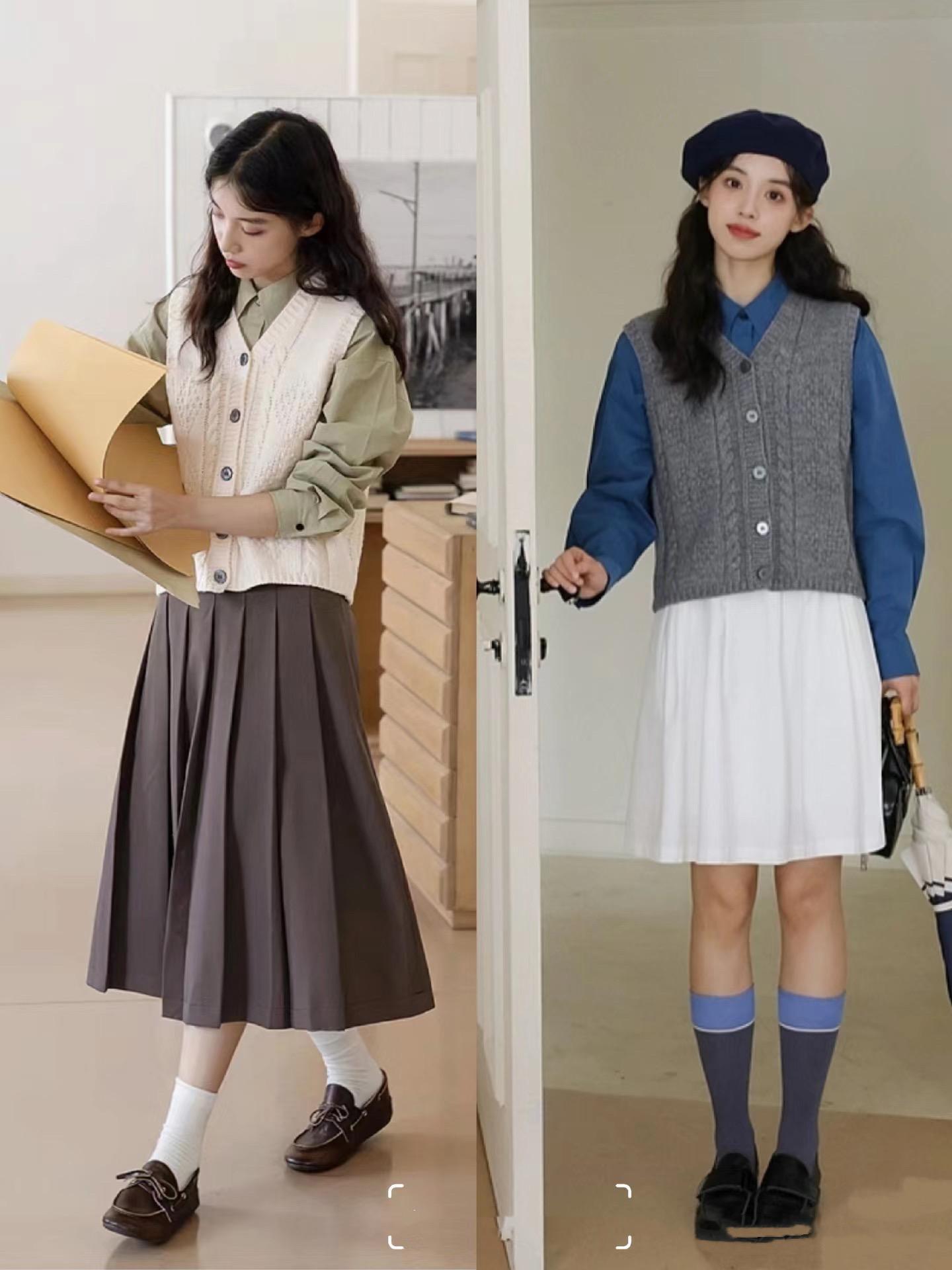 喜歡文藝風的小個子女生,就用針織馬甲來疊搭挺括的襯衫吧。稍微挺闊一點的寬鬆襯衫,疊搭針織馬甲,精緻又洋氣。