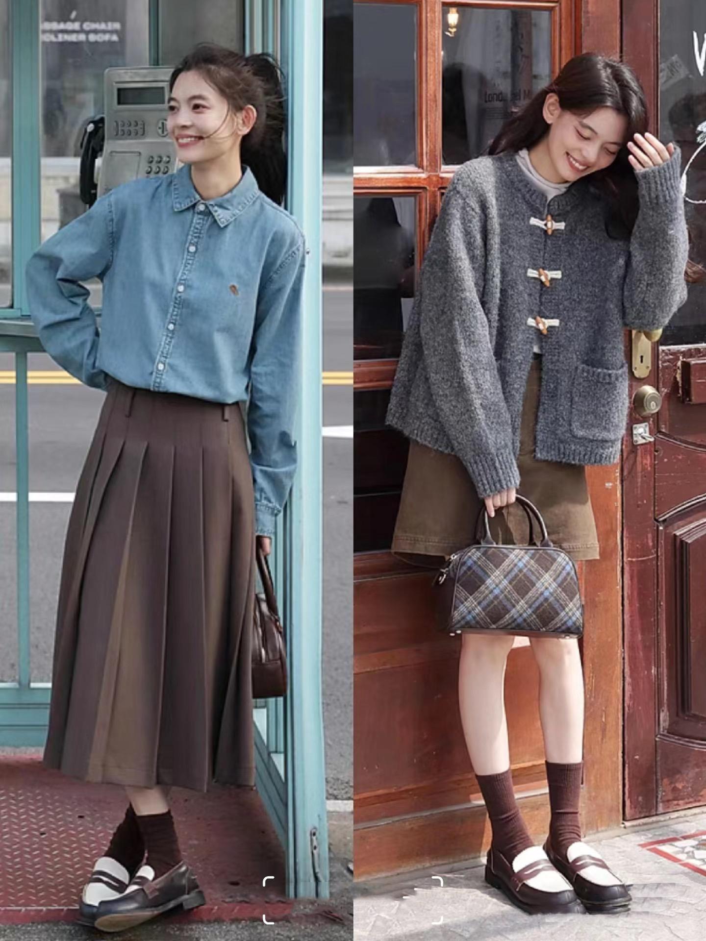 雖然是秋天了,但是少許的露膚液無傷大雅,只要不感覺到冷,都可以嘗試。尤其是百褶裙配中筒襪,一種露腿的穿法也是清爽洋氣。