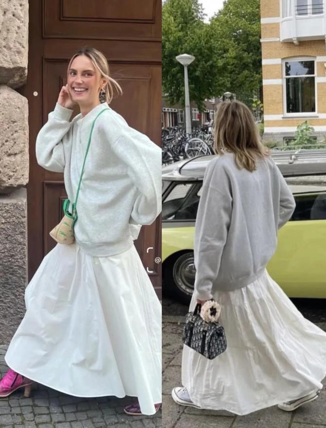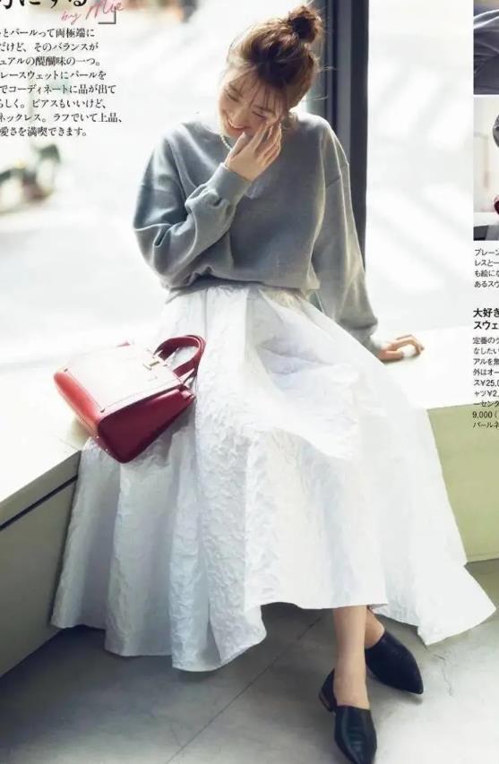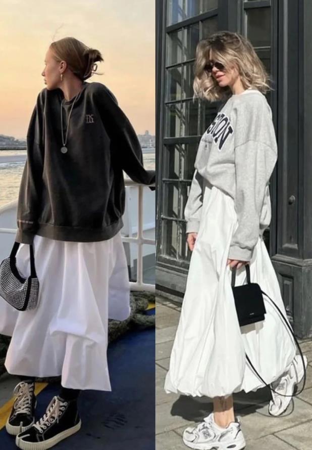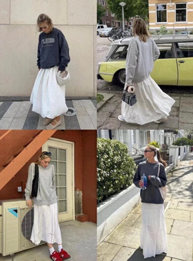 喜歡灰色衛衣的姐妹,說什麼也不能錯過這種基礎款的,搭配一條白色半身長裙,這樣的配色組合,看起來也太時髦和高級了。整個着裝看起來落落大方,還能讓穿着者呈現出一種清新優雅的氣質,再搭配一雙黑色尖頭平底鞋,低調舒適又不會過分張揚。