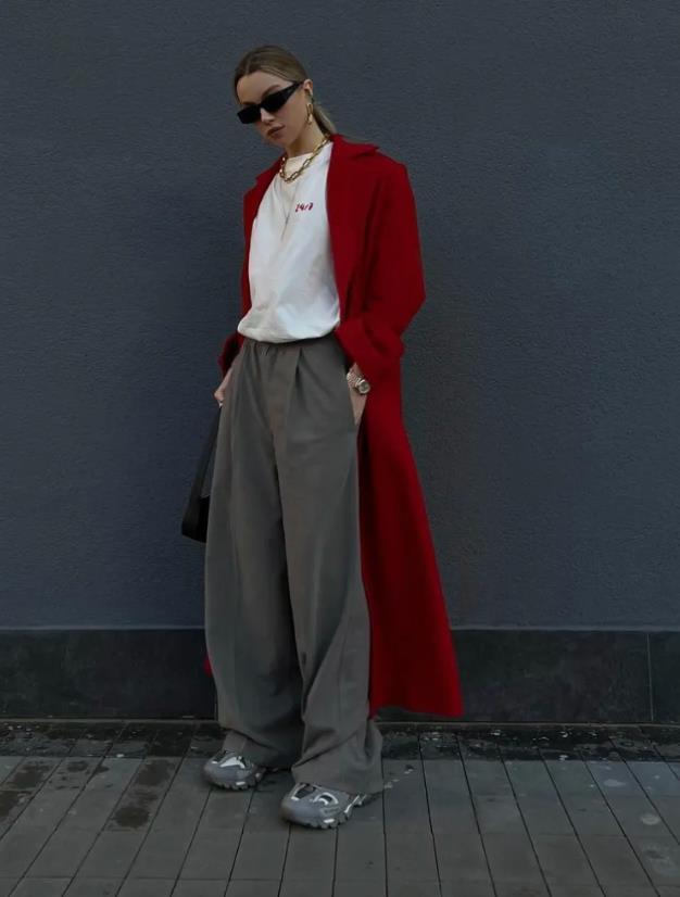 秋天,闊腿褲+運動鞋,休閒又時髦