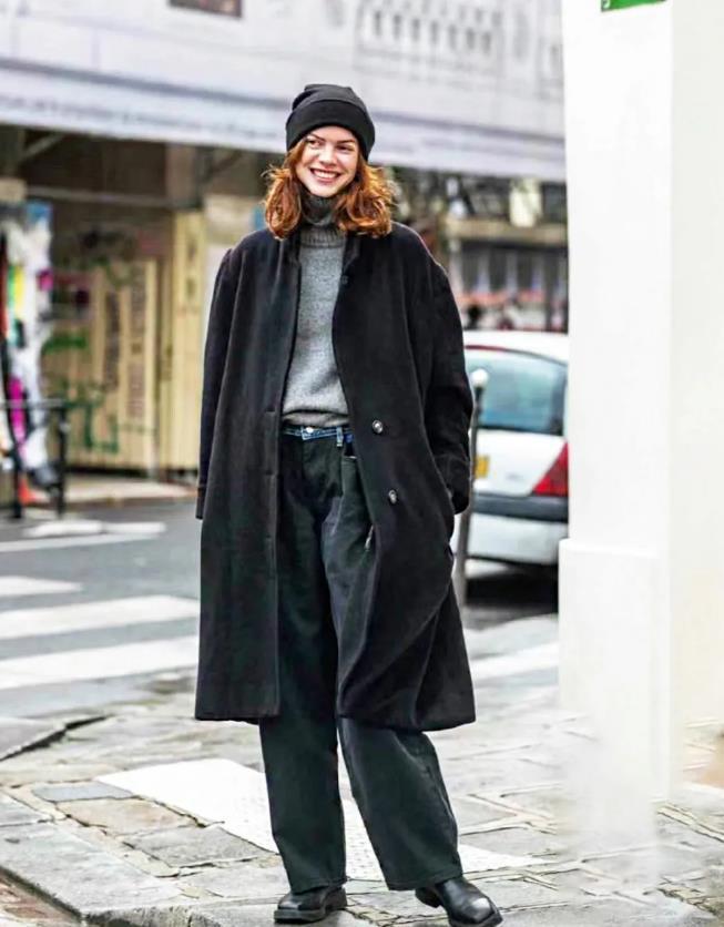 黑色大衣是真的很經典大氣呢,內搭選擇一件灰色高領針織衫,黑色+灰色的配色,也太耐看了吧?完全不挑膚色呢,搭配一件黑色牛仔闊腿褲,與黑色大衣進行了色彩呼應,讓整個着裝看起來更協調,腳下搭配一雙黑色樂福鞋,盡顯氣質和舒適。