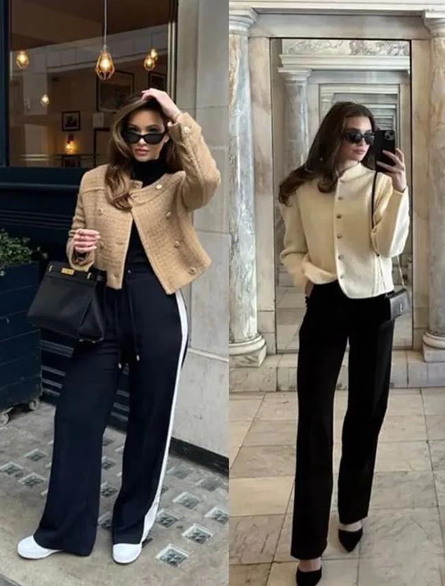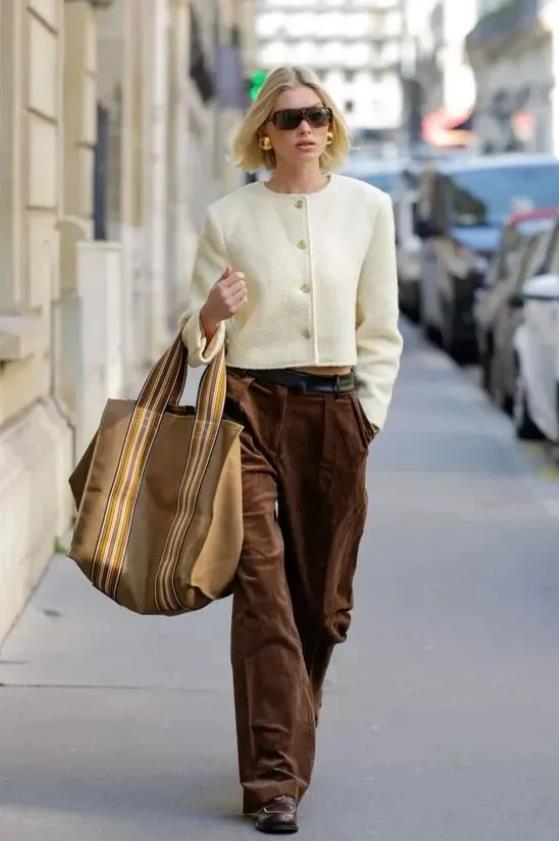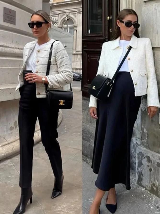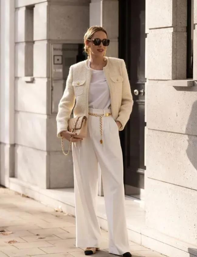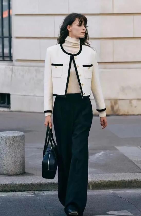 小香風外套也是很值得各位女性們入手的,精緻的剪裁,自帶氣質溫婉風格,與闊腿褲搭配,充滿了隨性和自在。腿部比例不是那麼好看的姐妹,穿起來也能得到修飾,同時,爲你的穿搭帶來更多的舒適感。