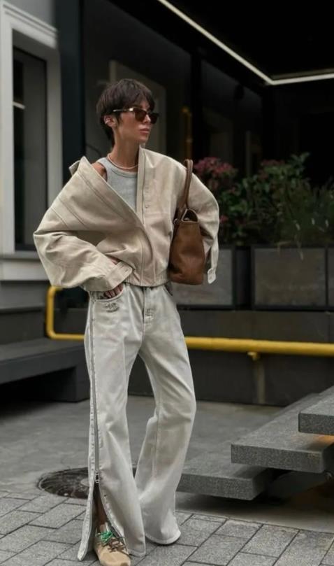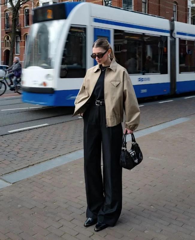 不管是西裝闊腿褲,還是直筒闊腿褲,都能與這種短款夾克外套相配,不同的單品組合,所呈現出來的風格也是不一樣的,不過,總能找到合適你自己的風格。