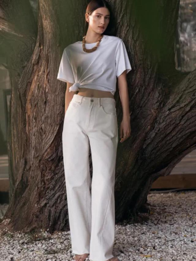 試試一身白色系的打扮吧,真的是自帶高級感,白色短袖t恤+白色牛仔褲,簡約又十分大方,t恤可以全部塞進褲子裏面,也可以在一邊打一個角,既提高了腰線比例,又拉長腿部線條,不僅顯氣質,還不失自信和魅力。