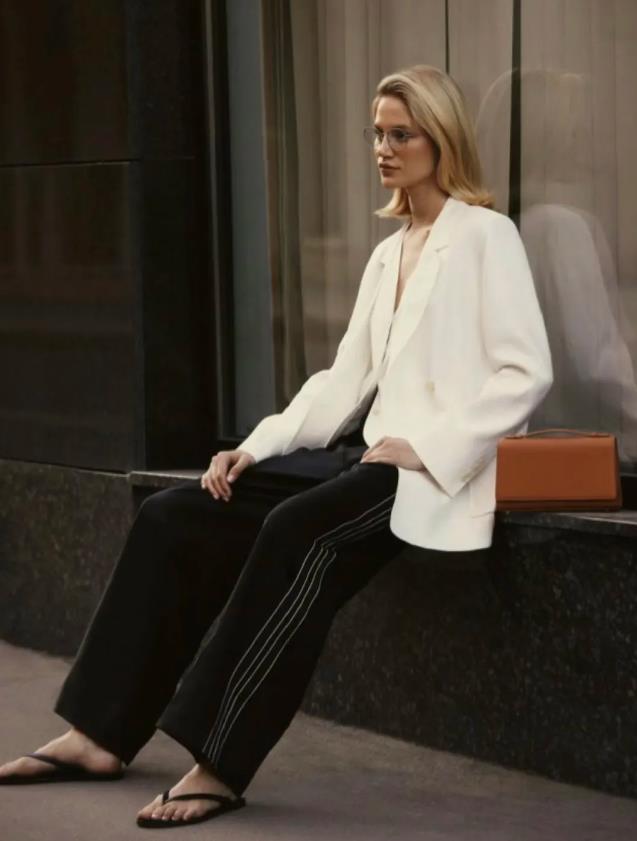 運動褲可是永不過時的款式,黑色運動褲,那可真的是太百搭和顯瘦了,選擇一件白色西裝外套來配,就呈現出一種很張揚的時尚,黑白的配色組合,經典且耐看,整體給人一種不平凡的魅力,又展現了時代女性的獨立。