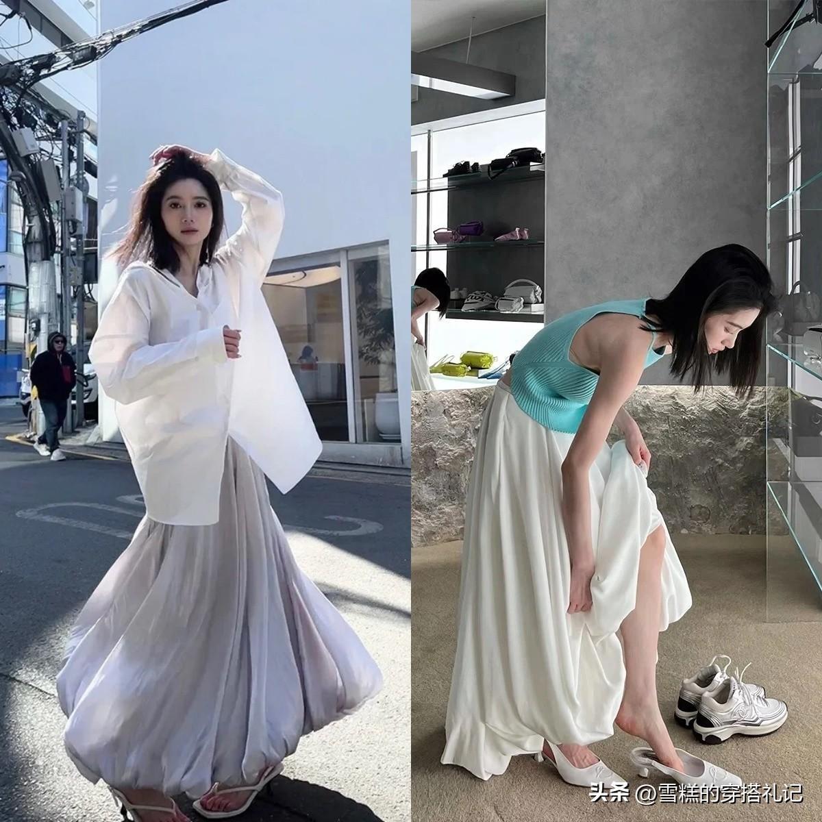 不知道大家有沒有注意到,近段時間潮人們都很喜歡用花苞一樣的半身裙來裝飾造型。這種裙腰修身,裙襬又寬大的裙子,從上到下的線條感很流暢,即便遇上淺色的款式,也不會有過分的膨脹感反而顯得很可愛精緻。