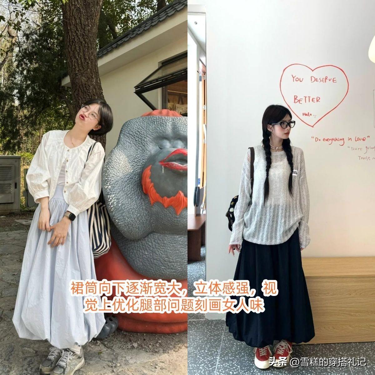·花苞裙搭配優點:①裙腰收緊,裙襬支撐性好,整體貴氣時髦 ②配色簡約,富有質感