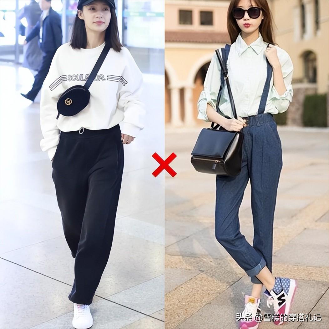對比圖❷:運動鞋顯得腿短,顯身材比例差,對小個子不友好