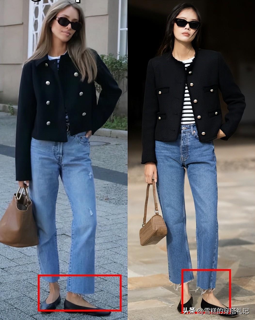 想要穿搭呈現出日常舒適的效果,那就讓它和奶奶鞋搭配,它讓穿搭低調不失氣質,尤其是配牛仔褲穿你,能塑造出復古的小香風味道。因爲奶奶鞋的鞋底是非常輕薄的款式,鞋面的設計採用淺口,是爲了增加視覺的延長,避免顯腿短的問題,因此褲子不要太長,九分最佳。