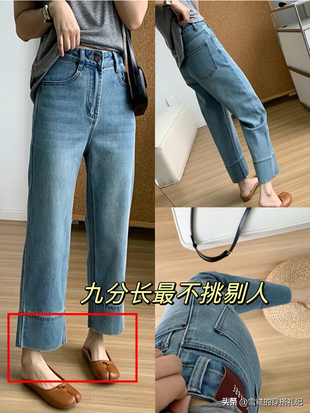牛仔褲在所有褲子中是最經典的款式,它經典的藍色款,穿出清爽與青春,並且它不會限制任何年齡階段的女人穿,套上它都能散發年輕感。牛仔褲的時尚已經流行了百年,並且一年四季都可以穿,只要選對款式,牛仔褲就能滿足一衣多穿的目的。建議穿直筒牛仔褲,尤其是九分長,穿出休閒愜意,又有種不經意間的時髦感。