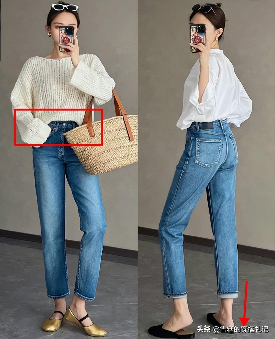 穿褲子不僅要看版型款式,在整套穿搭中都時刻要學會打造下半身延長感的穿搭方式,可以通過腳踝與鞋子的拉長,以及高腰的設計,瞬間打造出下半身的修長感,建議小個子女人一定要學會這種穿法。